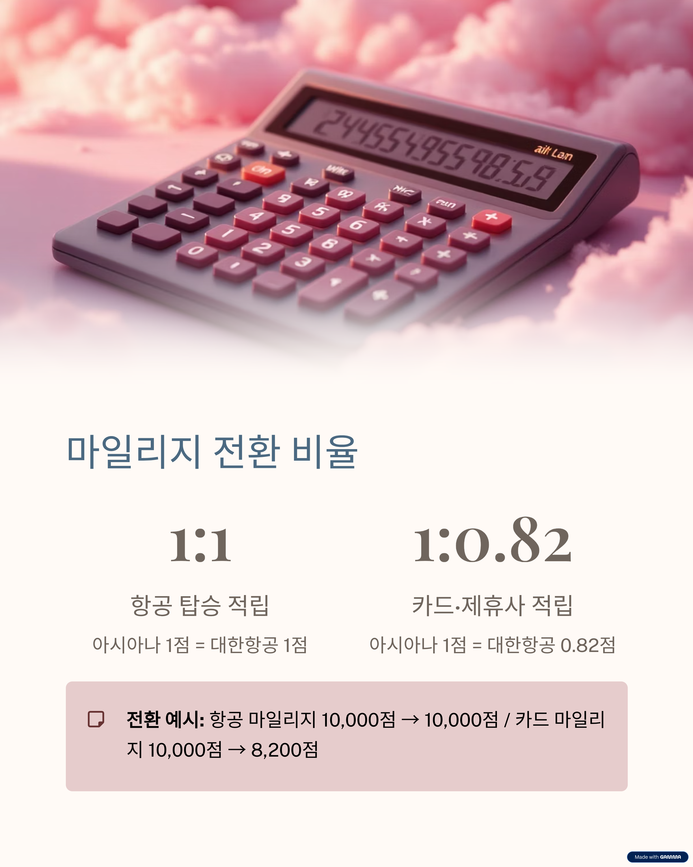 | 전환 비율 | 항공 마일리지 1:1 / 카드·제휴 1:0.82 |