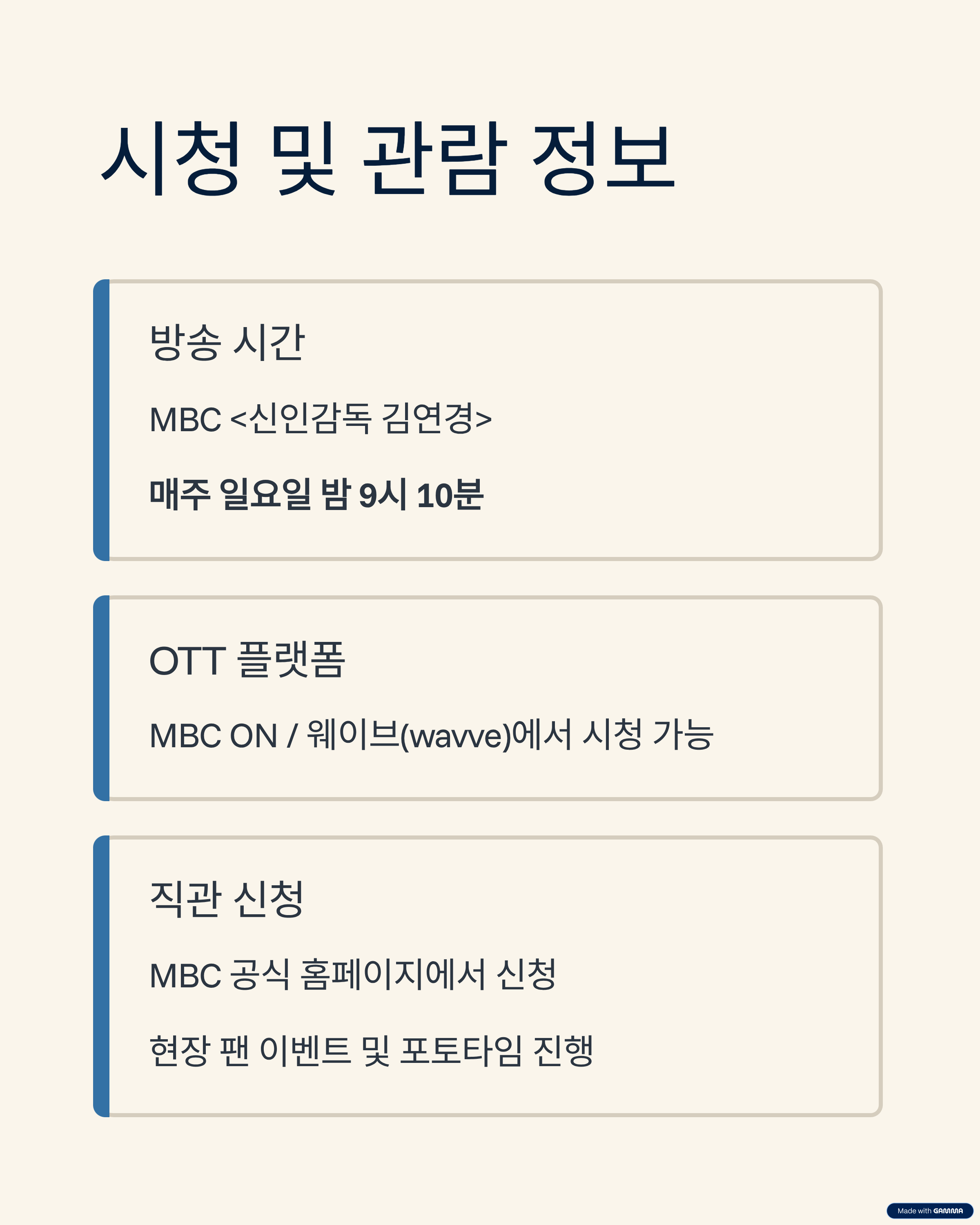 - MBC 공식 홈페이지에서 직관 신청 가능