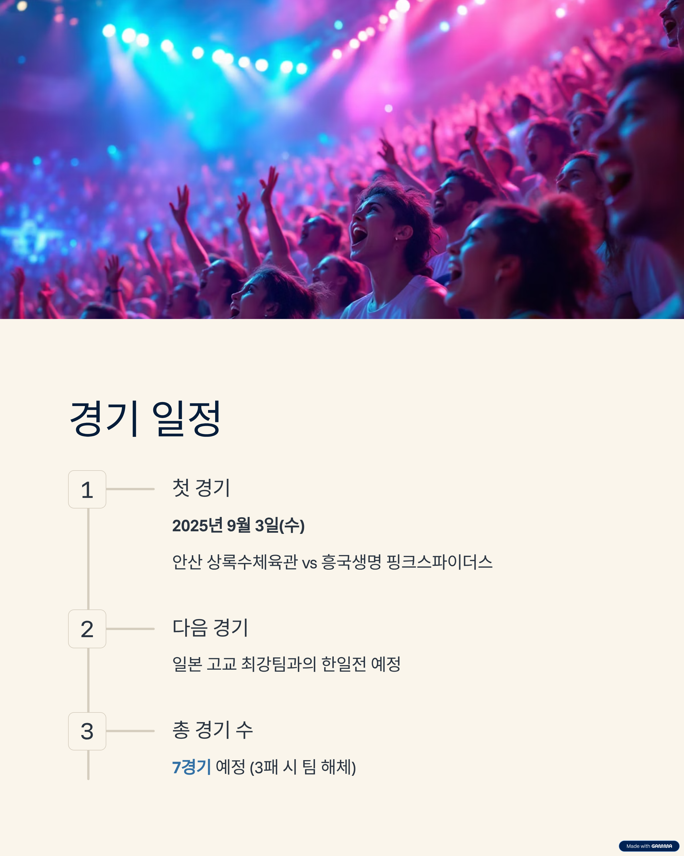 | 첫 경기 | 2025년 9월 3일, 안산 상록수체육관 |