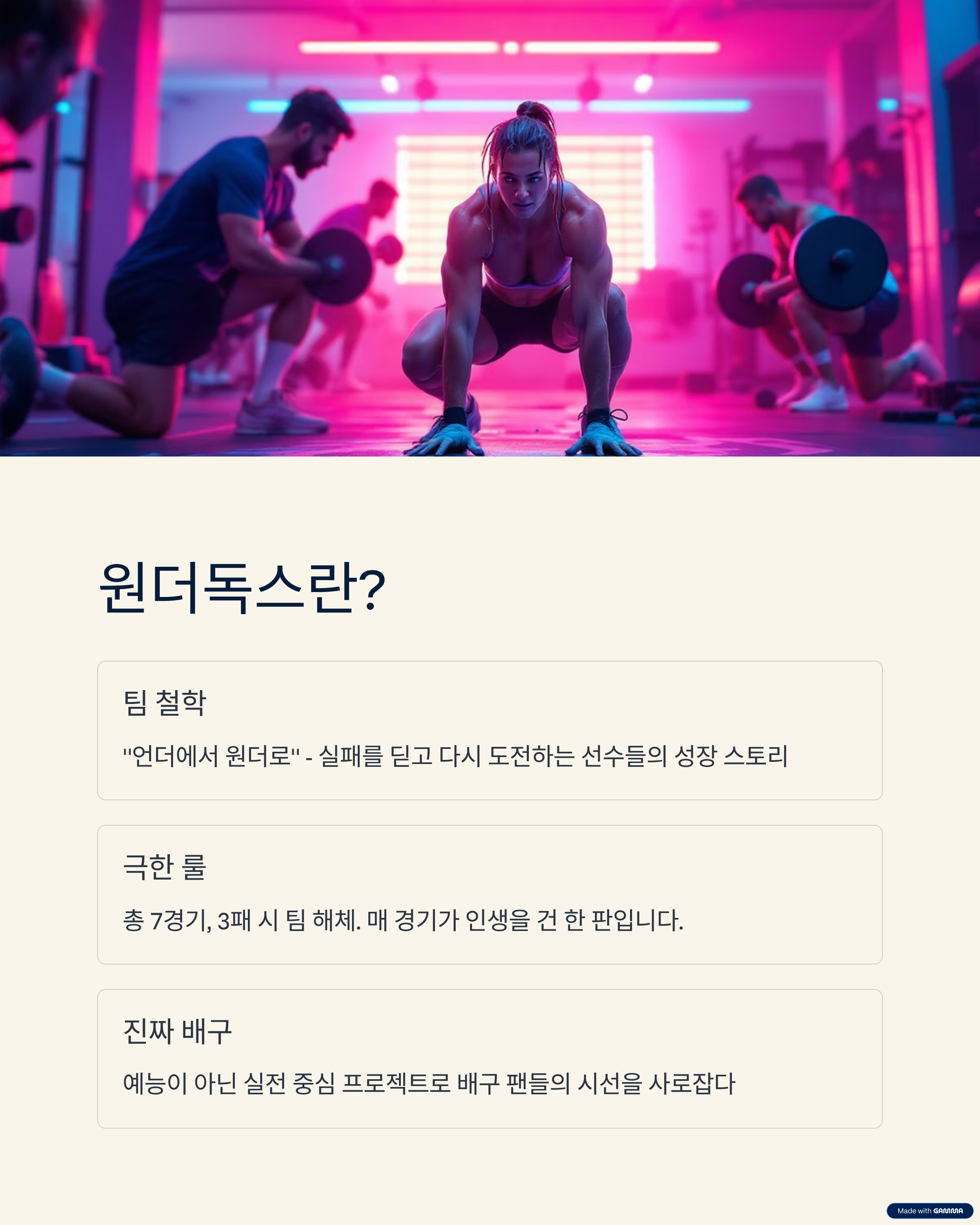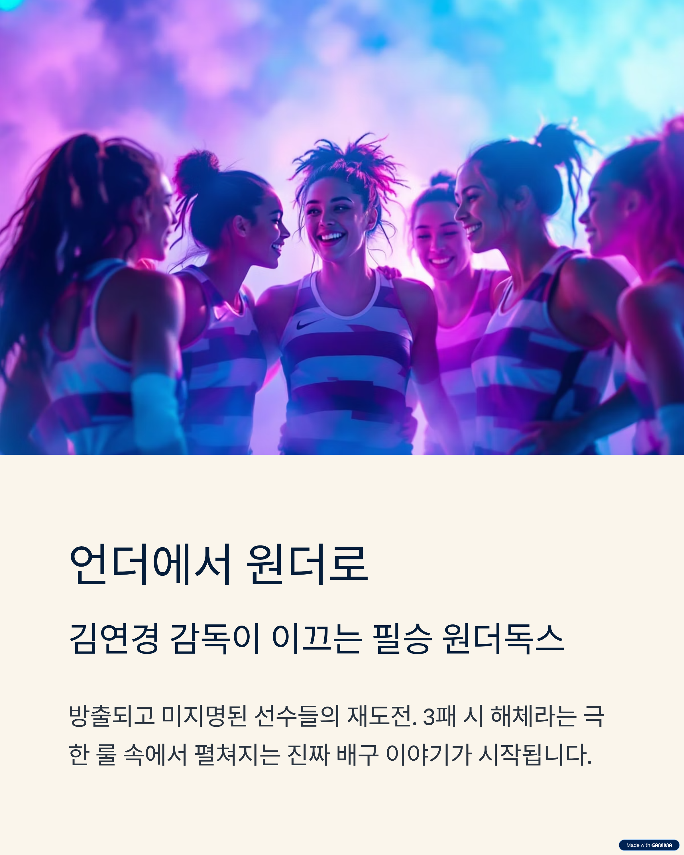 ‘언더에서 원더로’라는 철학 아래, 실패를 딛고 다시 도전하는 선수들의 이야기를 담고 있습니다.