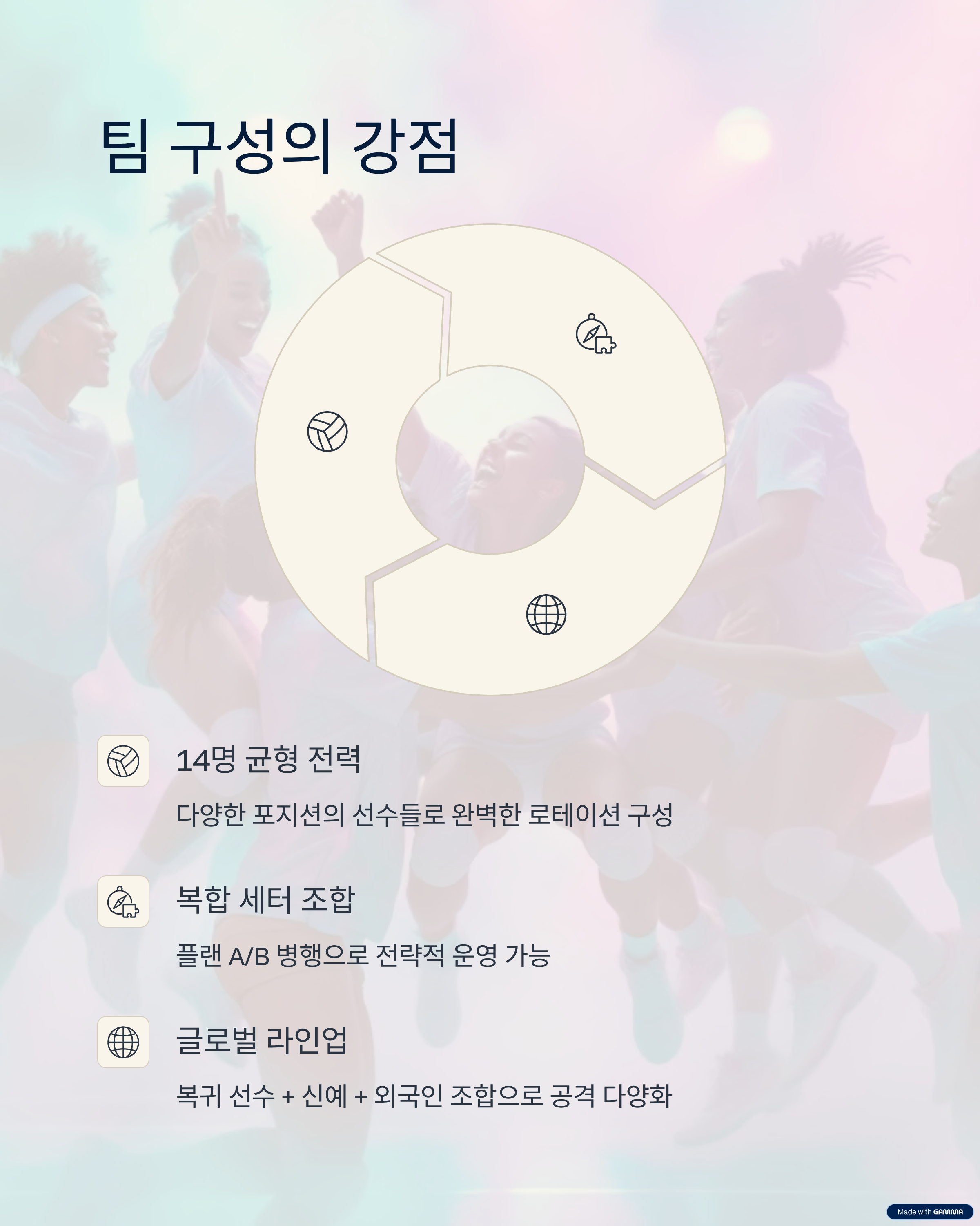 - 복합 세터 조합, 강화된 서브, 백코트 조직력으로 팀 전력 상승
