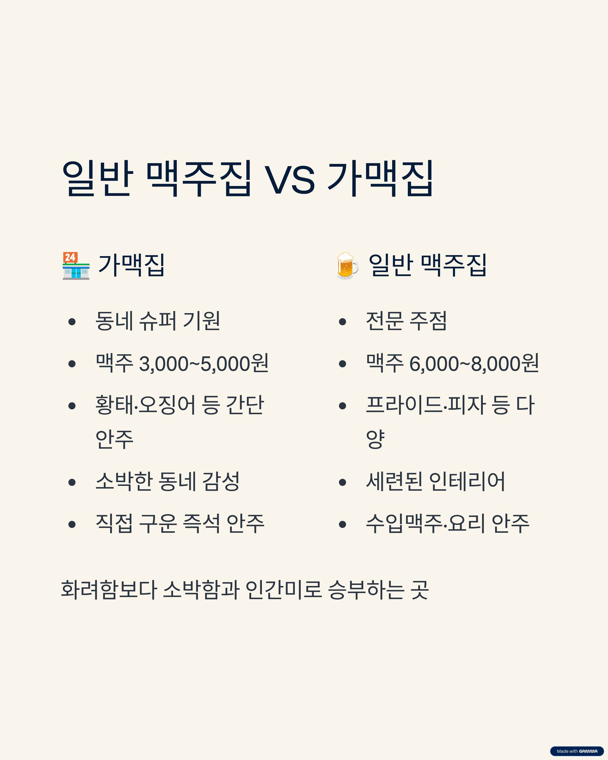 | 구분 | 가맥집 | 일반 맥주집 |