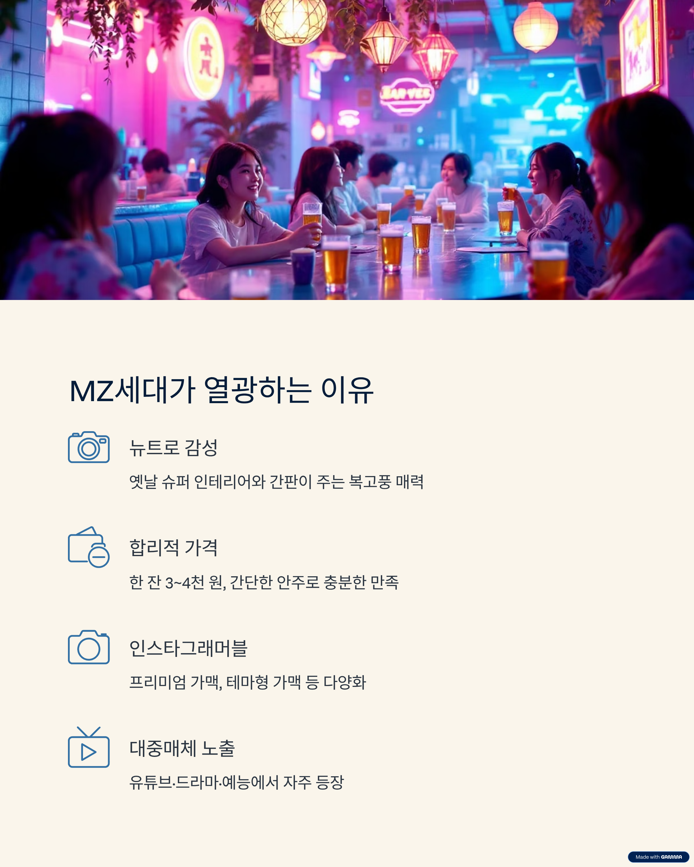 - ‘인스타그래머블 가맥집’, ‘프리미엄 가맥’, ‘테마형 가맥’ 등 다양화