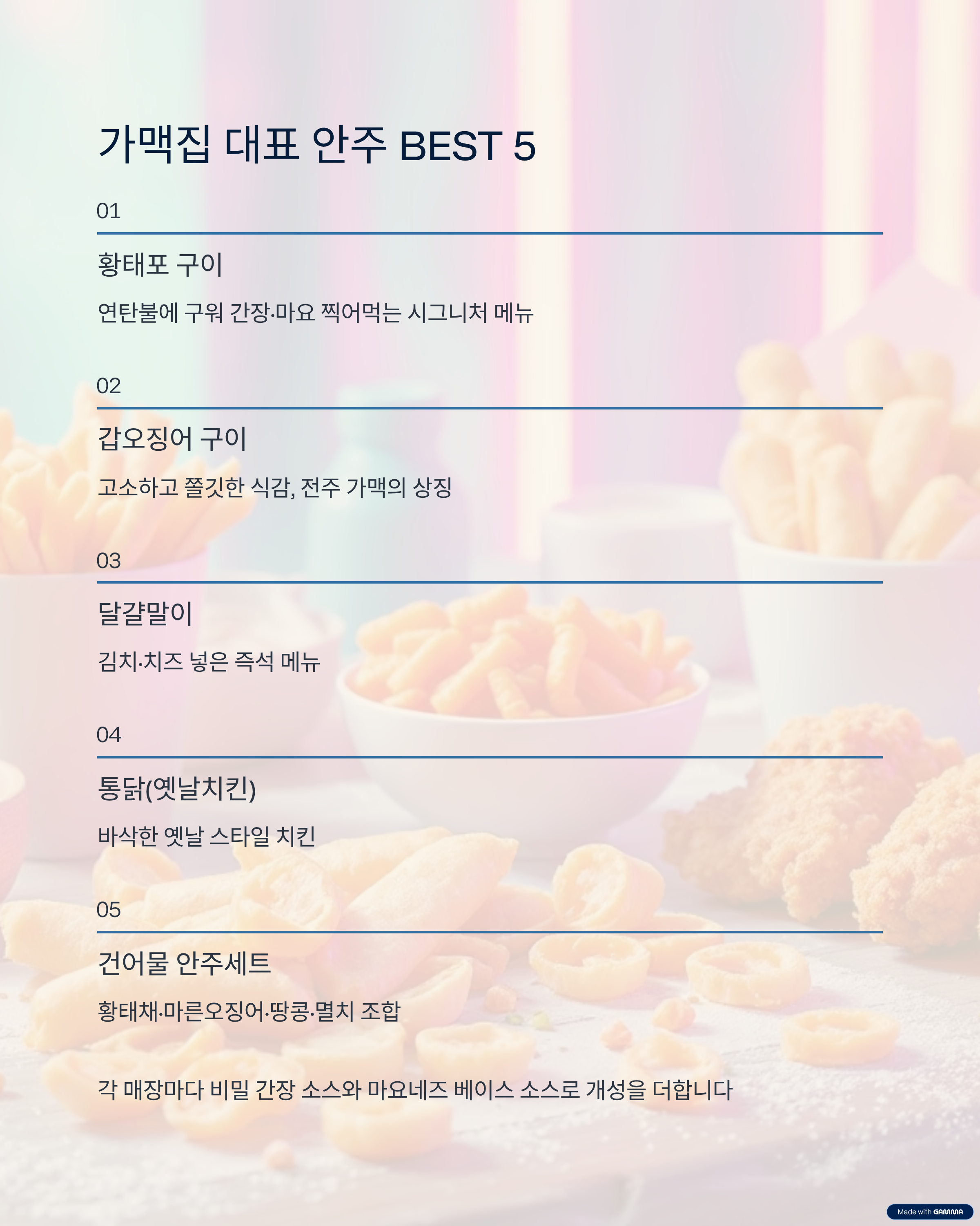 5. 가맥집 대표 안주 BEST 5