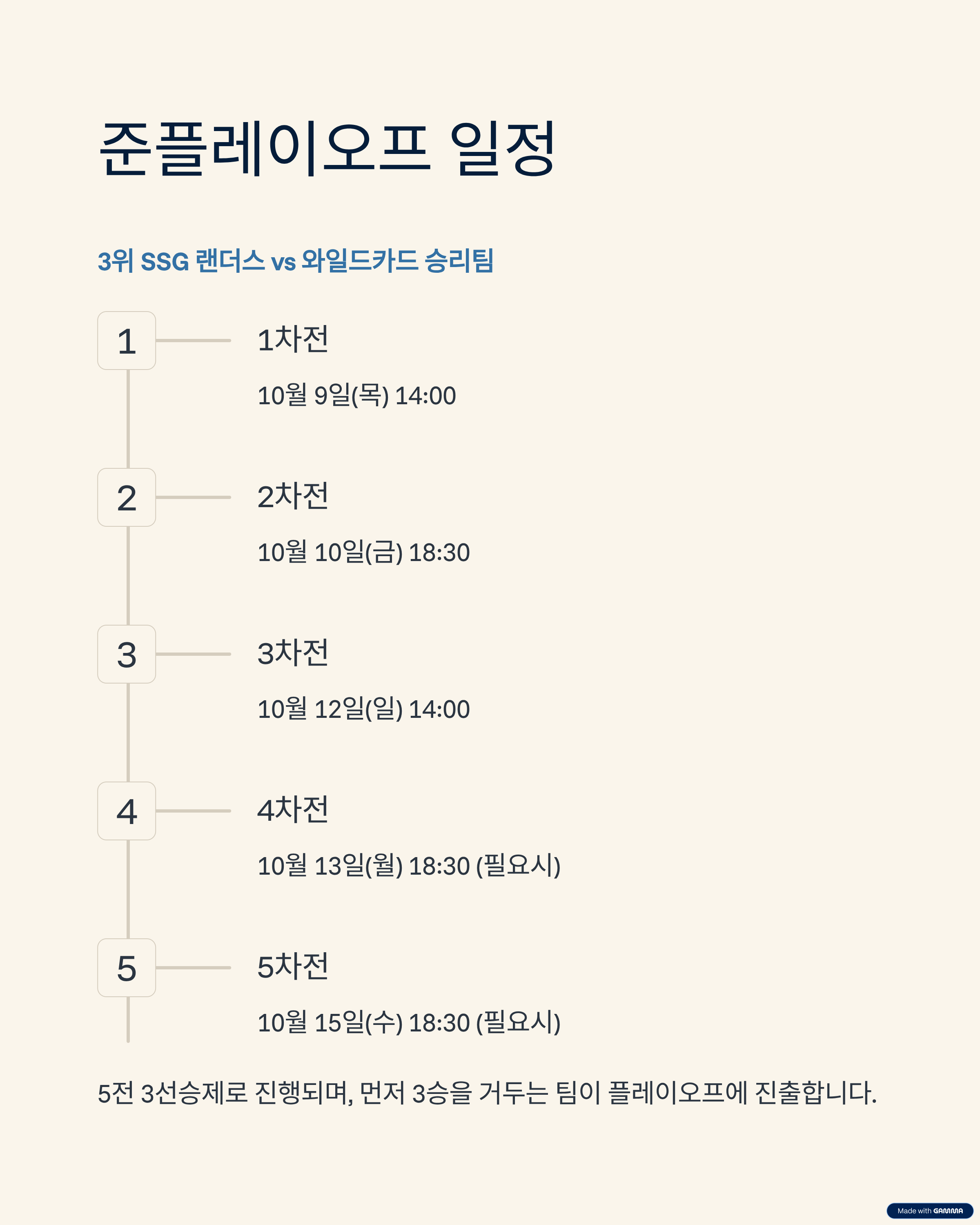 | 준플레이오프 | 10월 9일(목)~15일(수) | 최대 5경기 | 5전 3선승제 |