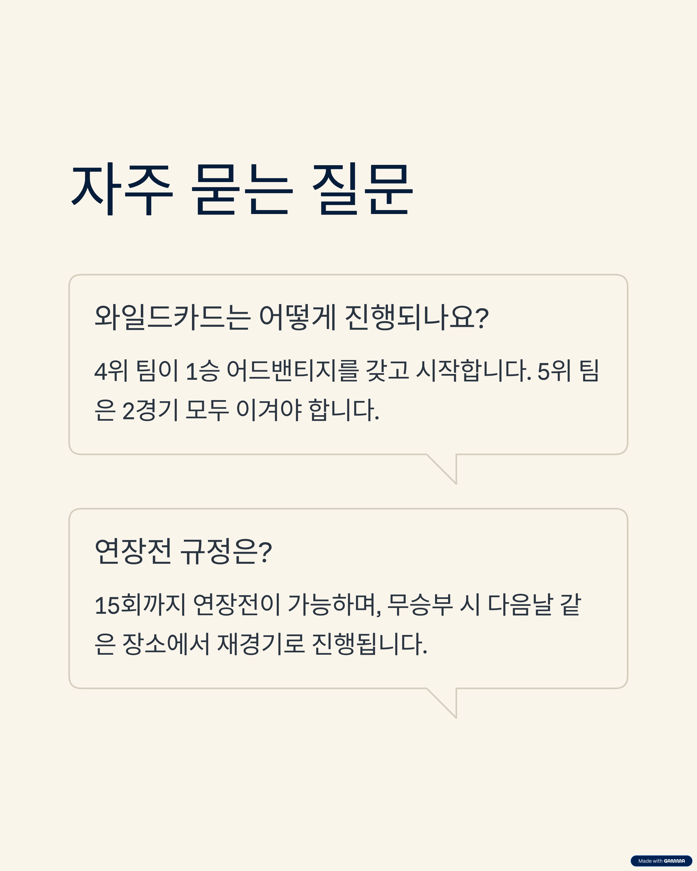 Q1. 와일드카드 결정전은 어떻게 진행되나요?