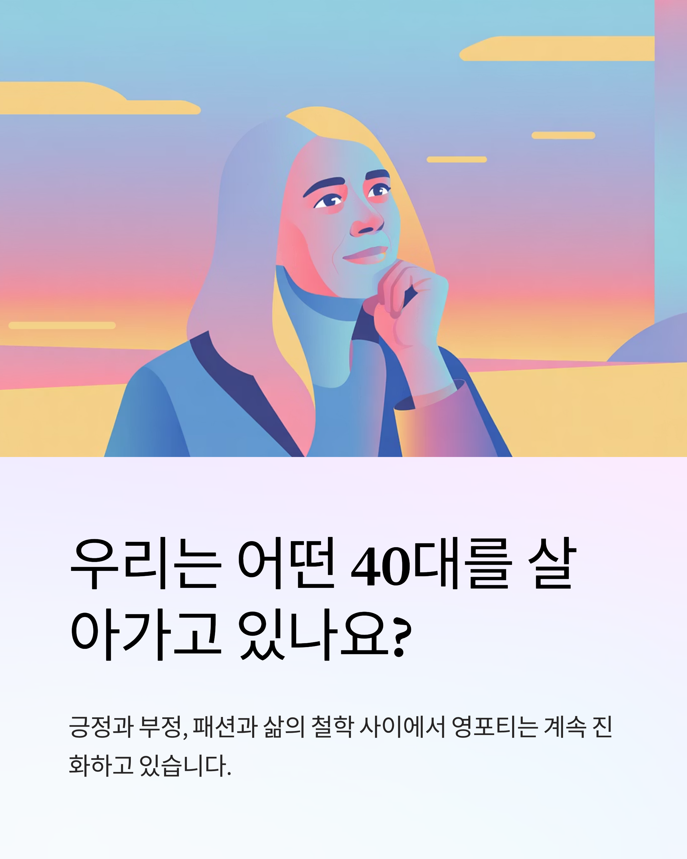 긍정과 부정, 패션과 삶의 철학 사이에서 우리는 어떤 40대를 살아가고 있나요?