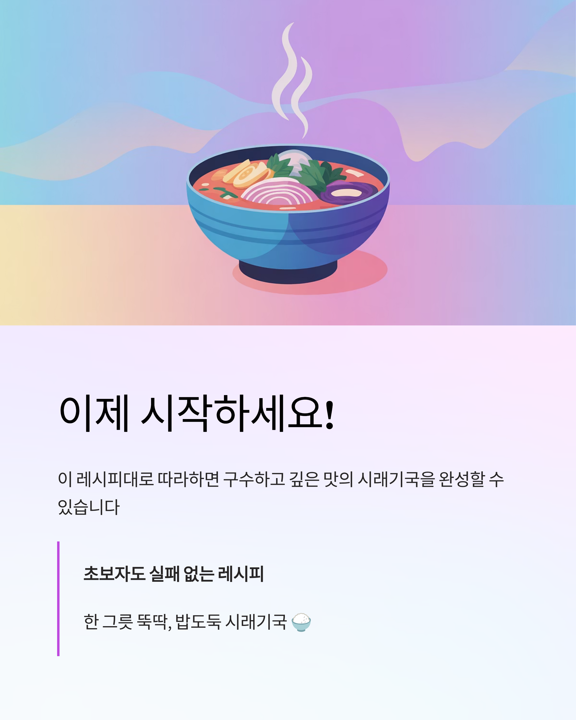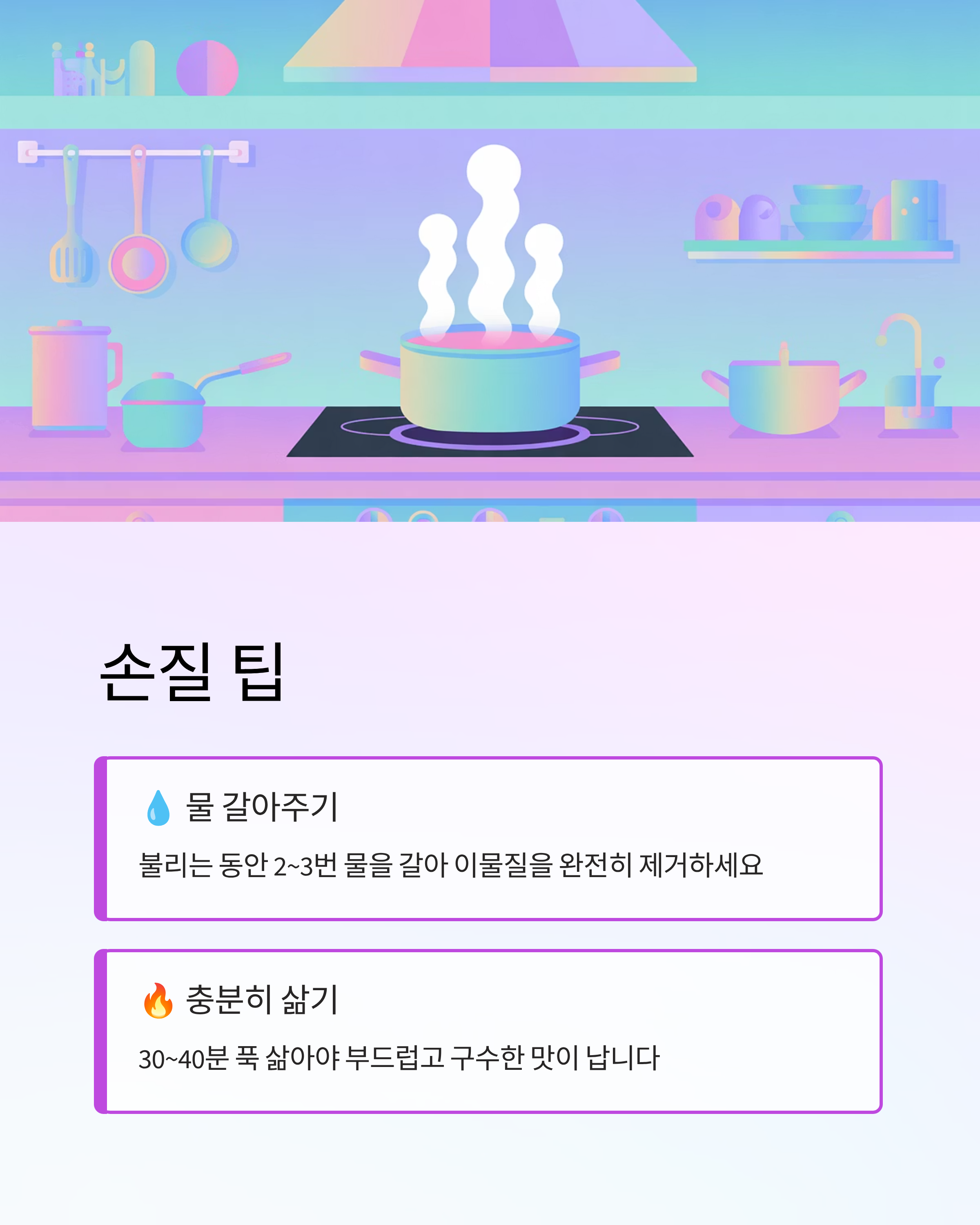 - 무, 콩나물, 들깨가루를 함께 넣으면 국물맛이 훨씬 구수해집니다