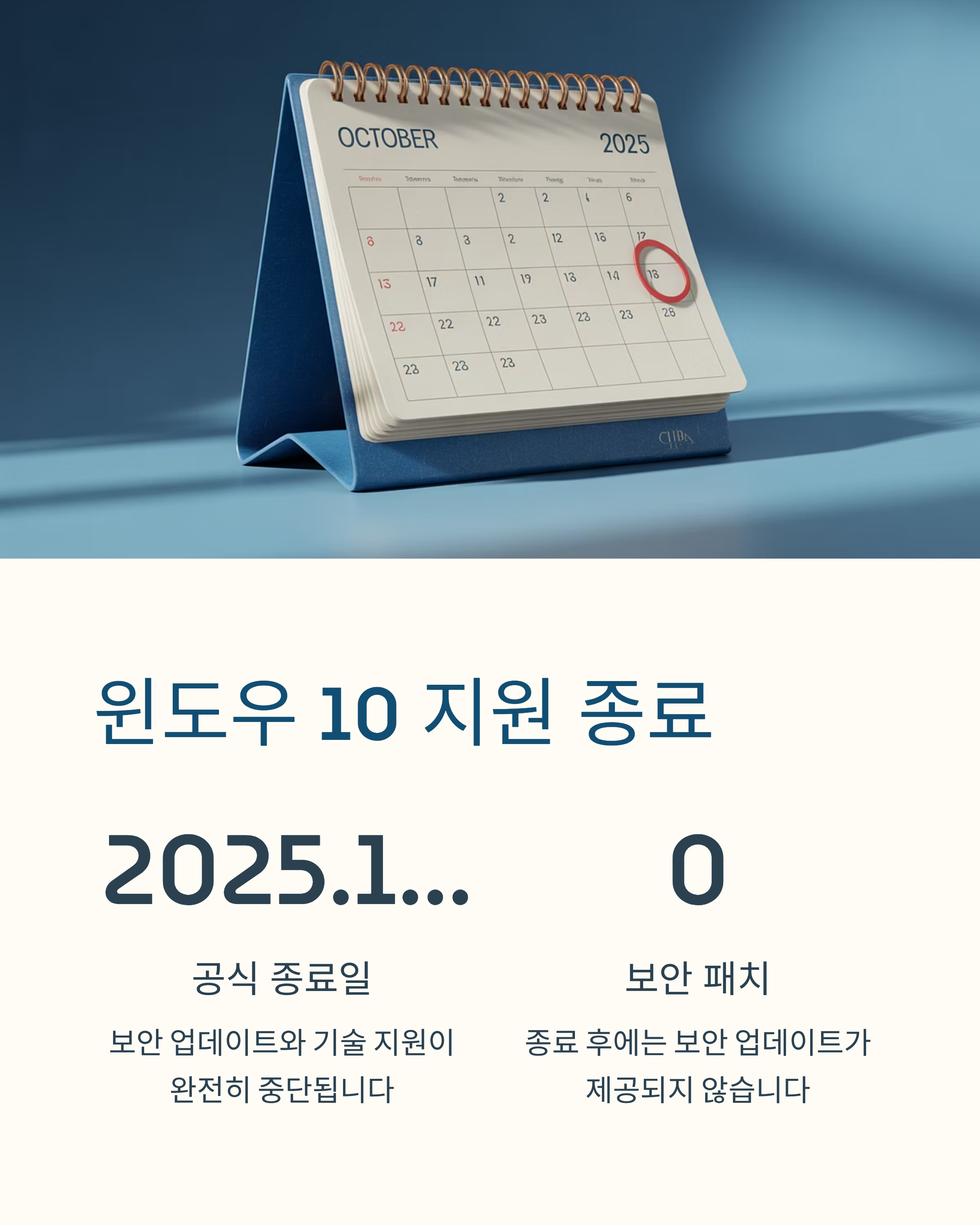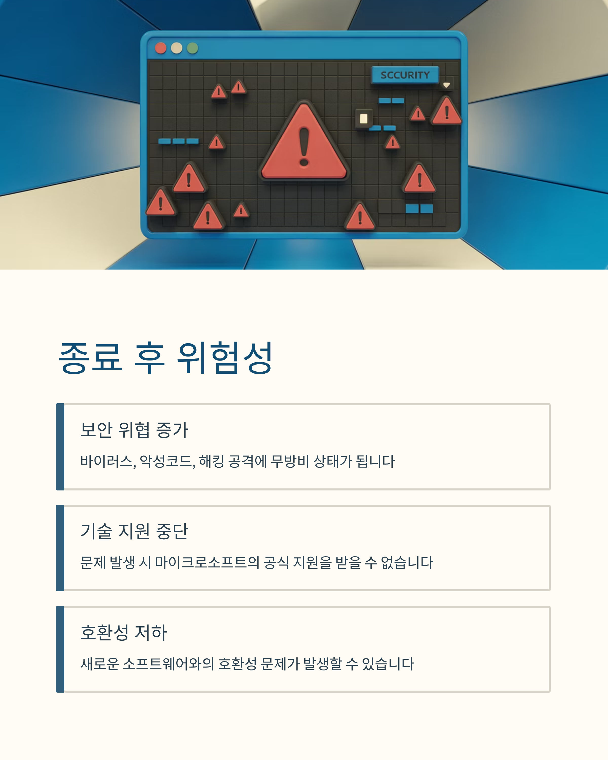 | 종료 후 의미 | 보안패치·기술지원 중단, 보안 위협 증가 |