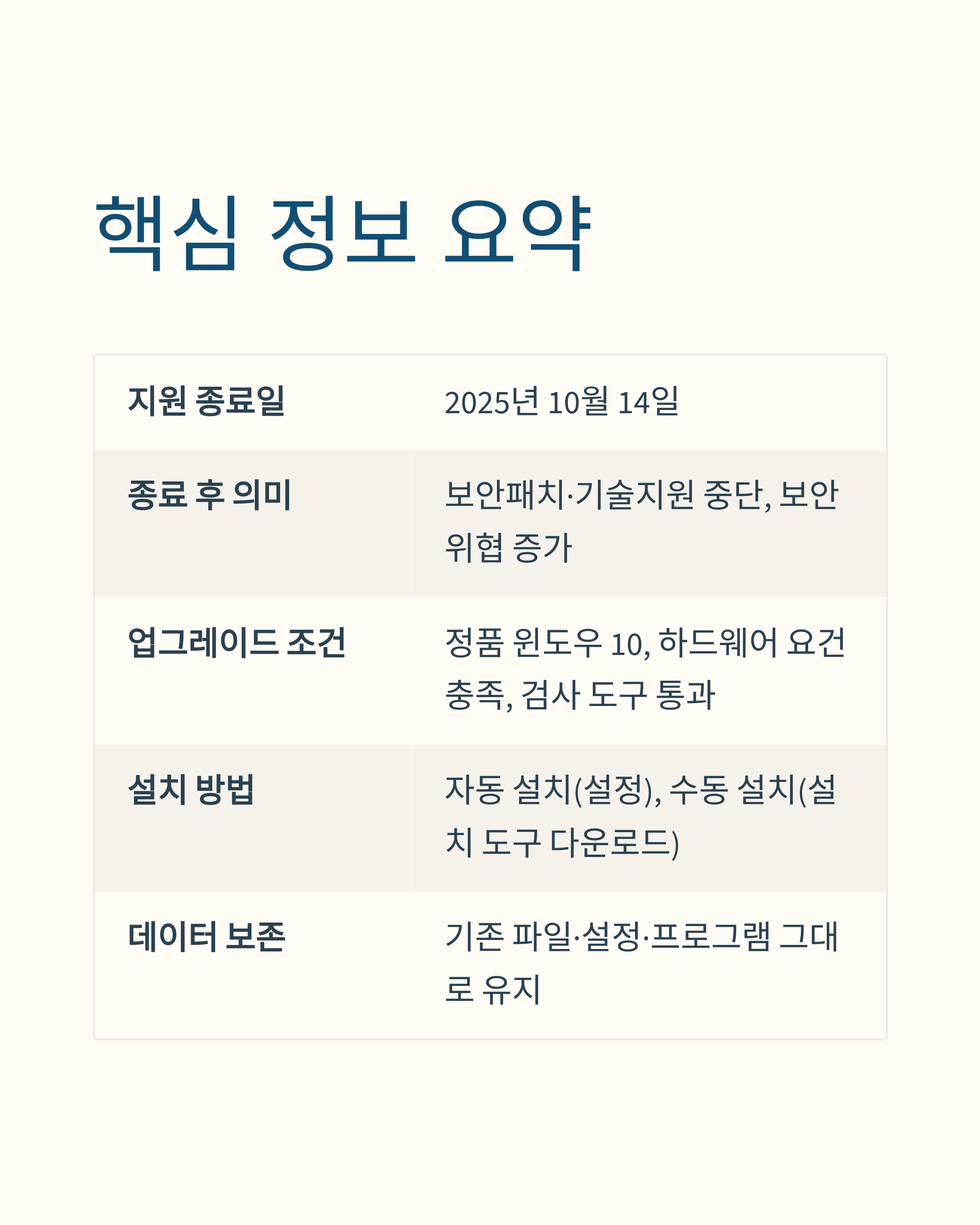 윈도우 10 지원 종료일이 2025년 10월 14일로 공식 발표되면서, 많은 사용자들이 윈도우 11로의 무료 업그레이드에 관심을 갖고 있습니다. 이 글에서는 업데이트 가능한 조건, 단계별 절차, 주의사항까지 상세히 정리해드립니다.