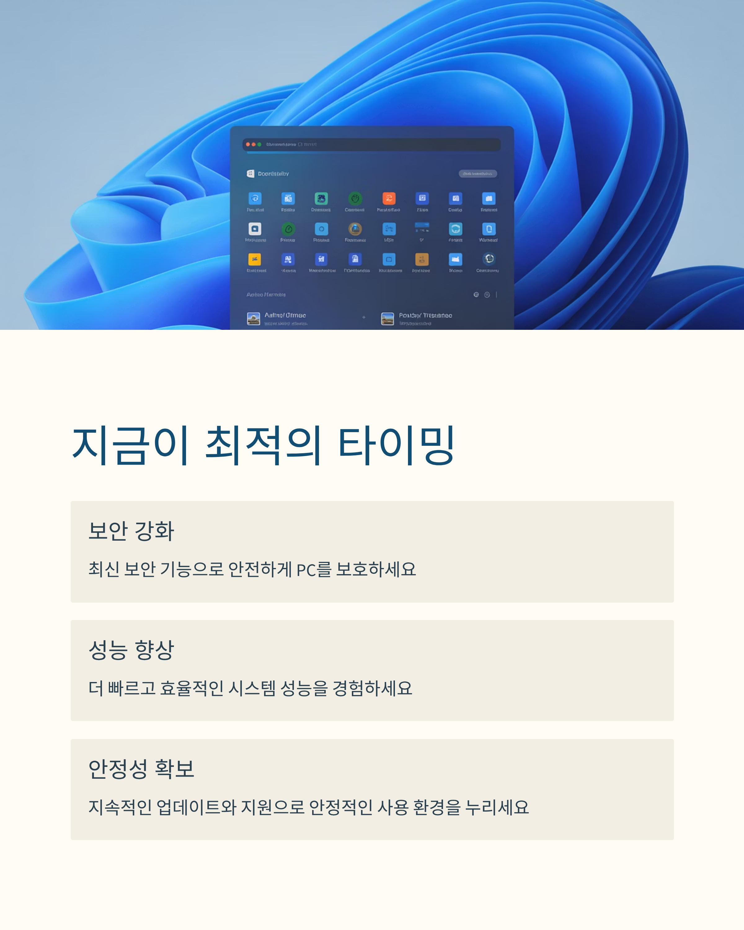 윈도우 11 무료 업그레이드는 지금이 가장 좋은 타이밍입니다. 보안, 성능, 안정성까지 모두 챙기고 싶다면, 지금 바로 PC 상태를 점검하고 단계별로 업데이트를 진행해보세요. 윈도우 10 종료 전에 미리 준비하면 걱정 없이 최신 OS를 누릴 수 있습니다.