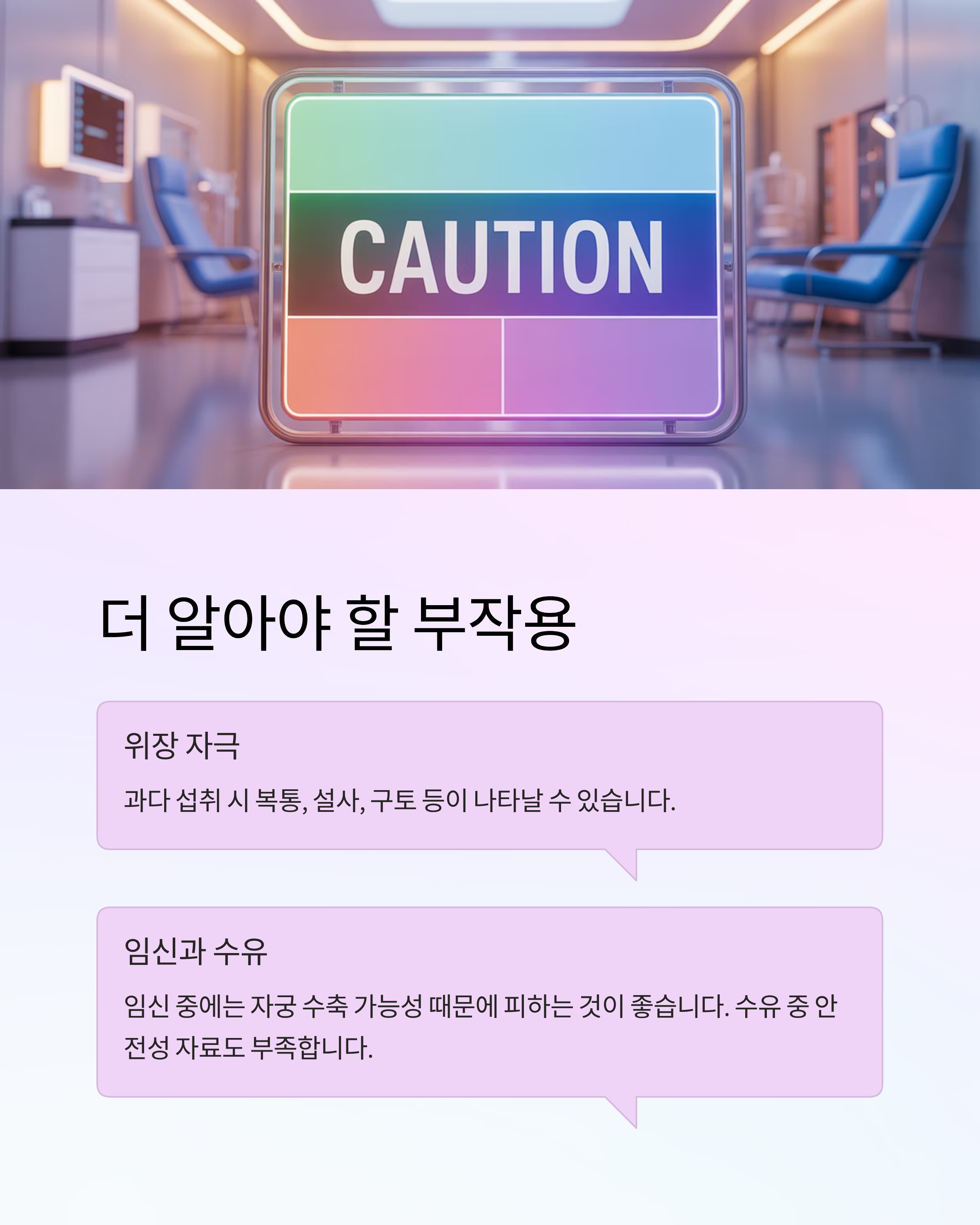 - 과다 섭취 시 복통, 설사, 구토 등의 소화계 증상이 나타날 수 있음