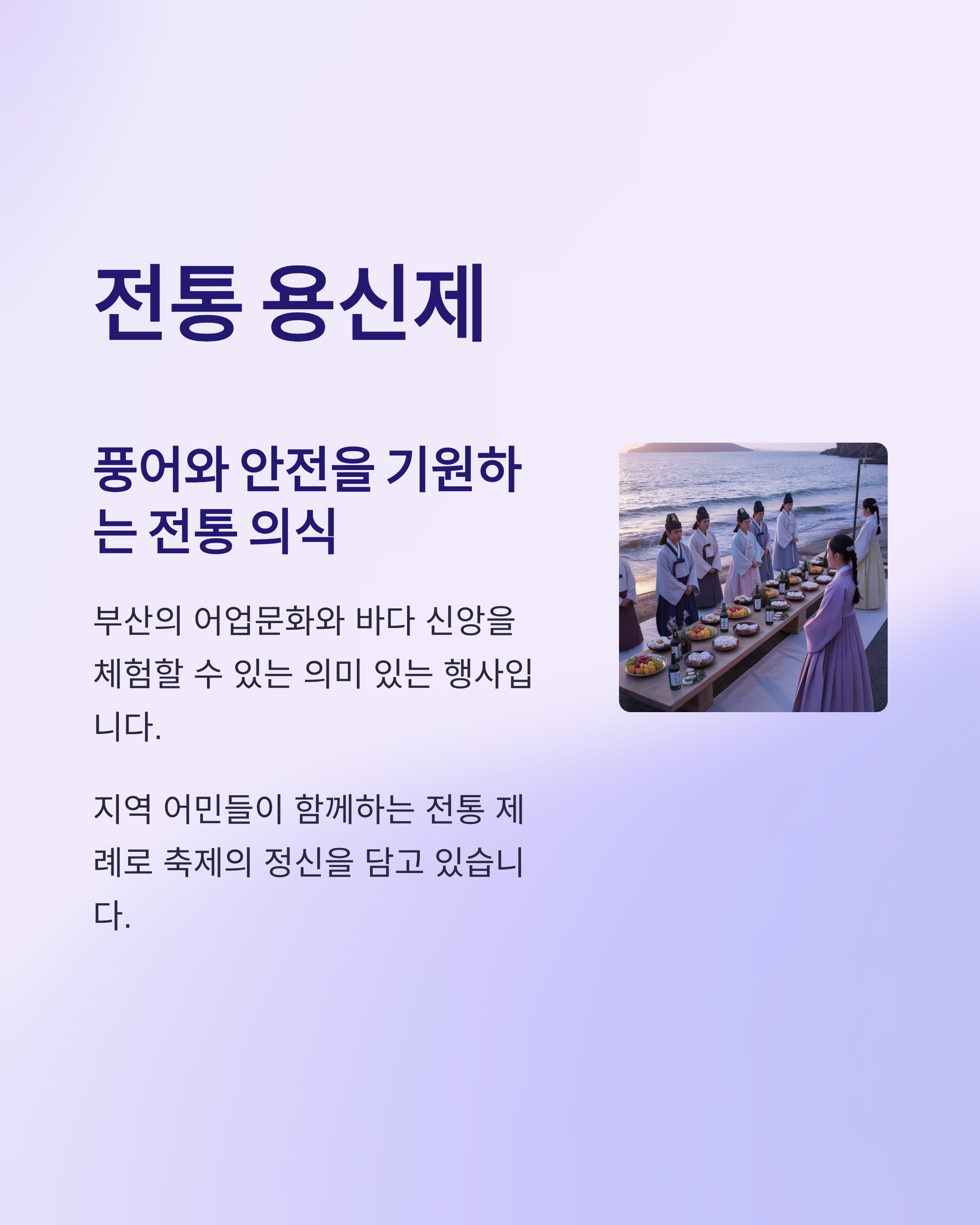 - 내용: 풍어와 안전을 기원하는 전통 의식
