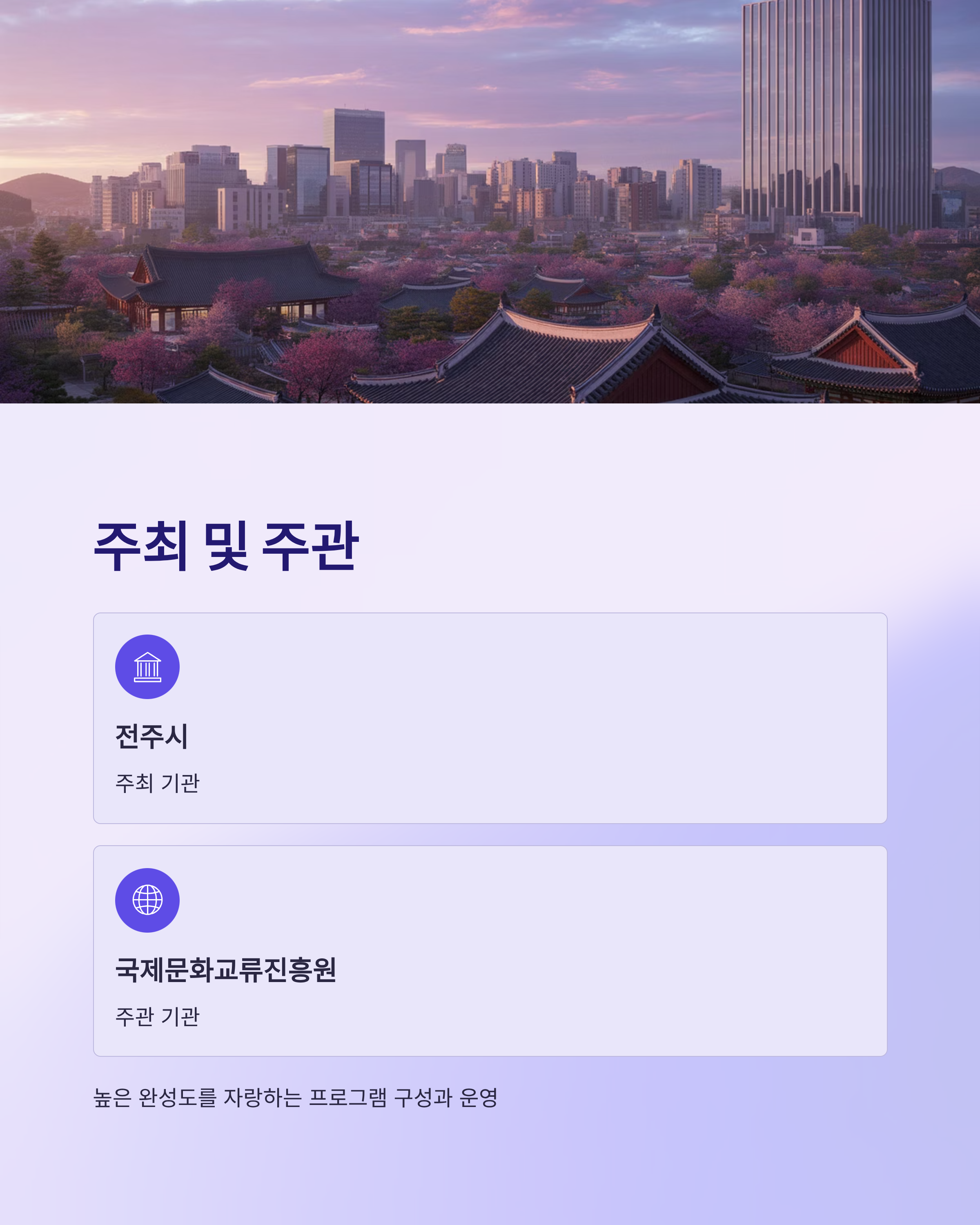 2025 전주비빔밥축제는 전주의 전통 음식문화와 현대적인 축제 콘텐츠가 결합된 가을 대표 가족 축제입니다. 전주시와 국제문화교류진흥원이 주최·주관하는 만큼 프로그램 구성이나 운영 면에서도 높은 완성도를 자랑합니다.