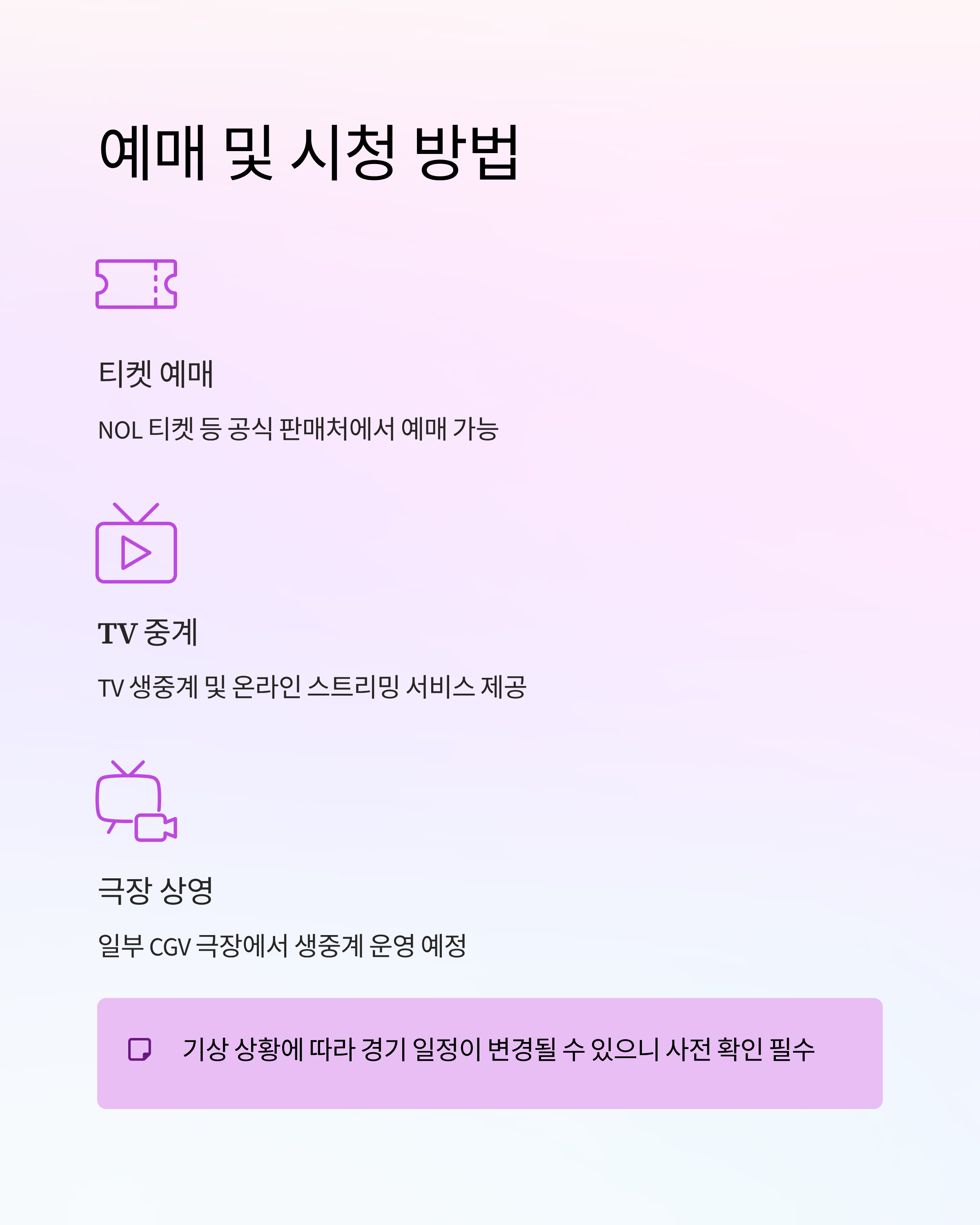 - 일정 변경 가능성: 기상 상황에 따라 경기 연기 가능