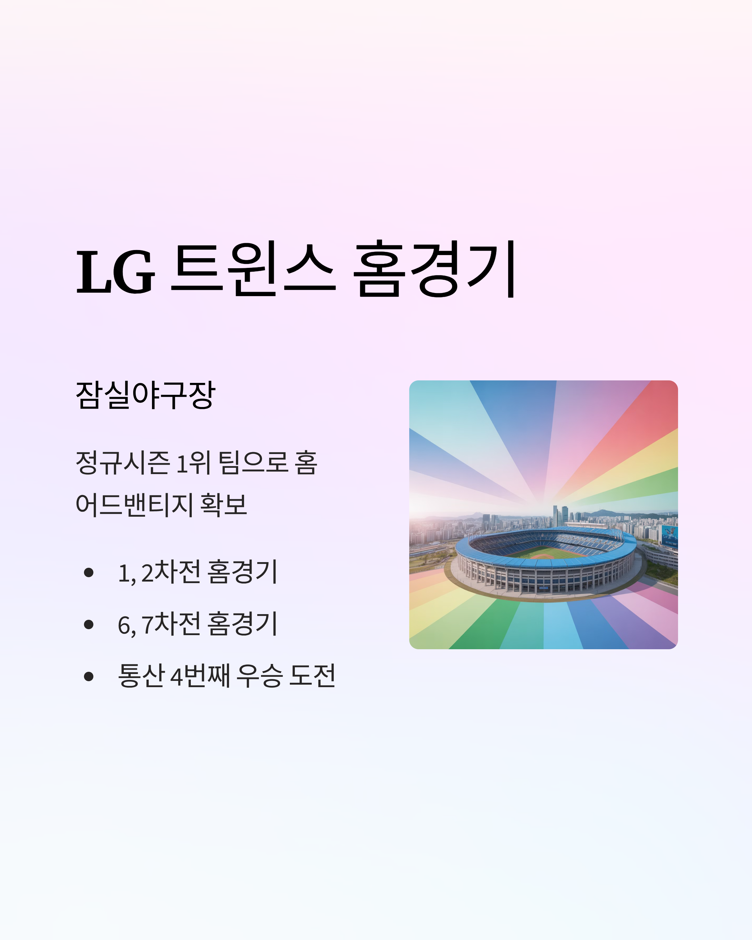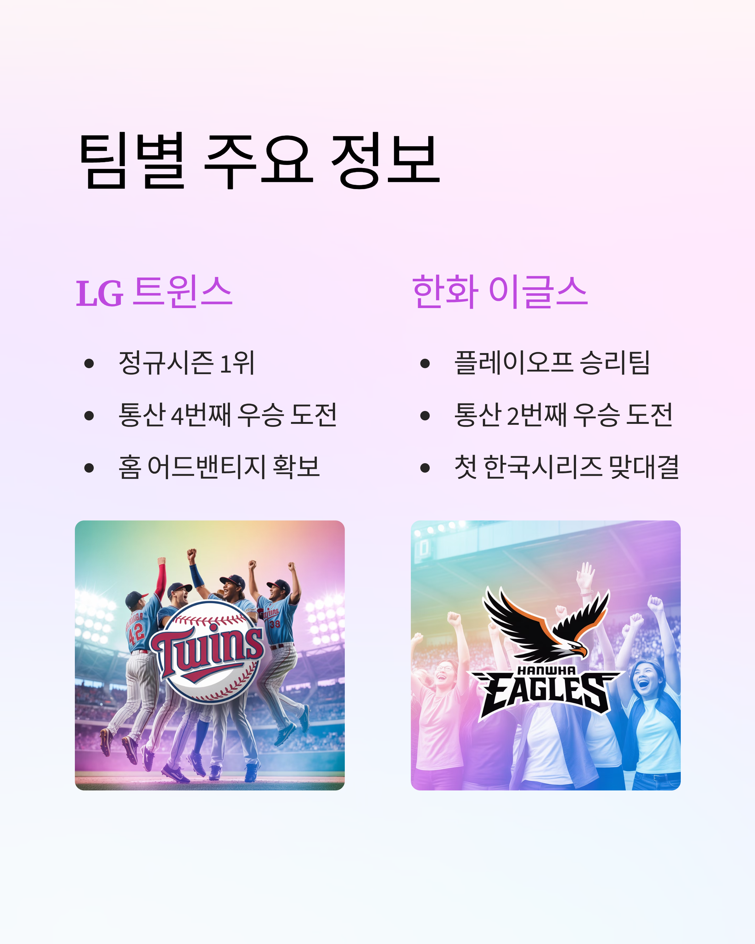 - LG 트윈스: 정규시즌 1위, 통산 4번째 우승 도전