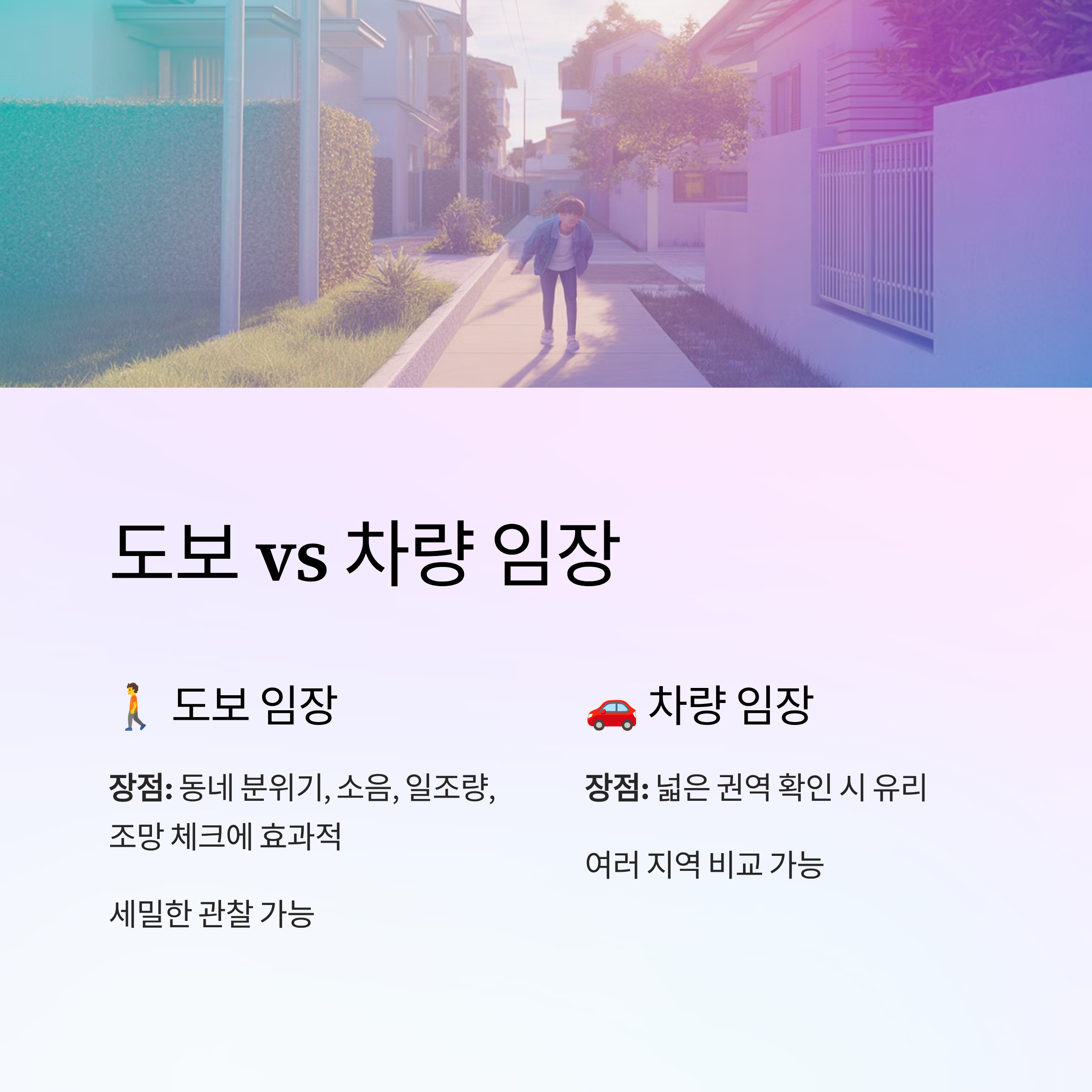 - 차량 임장: 넓은 권역 확인 시 유리