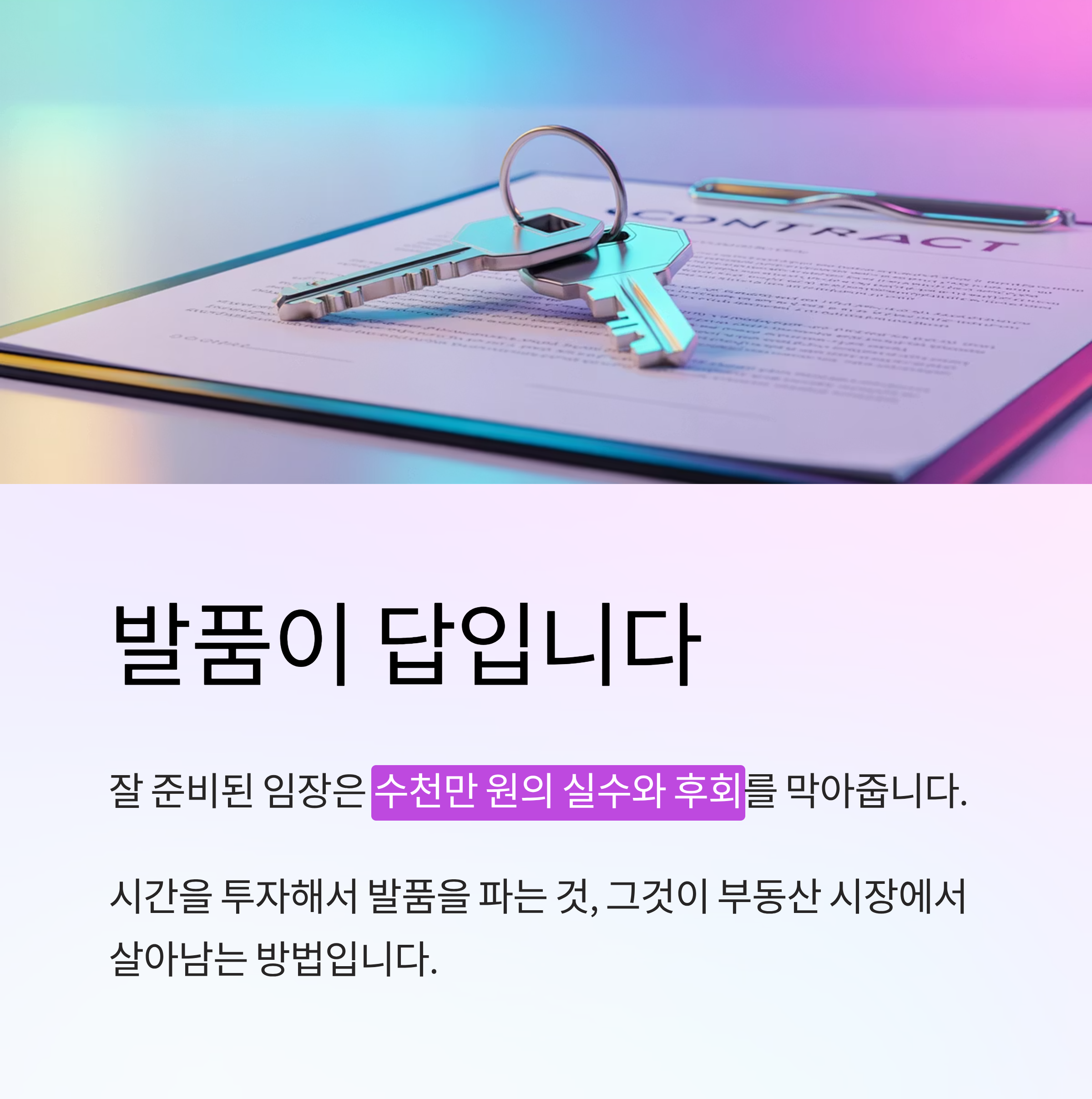 시간을 투자해서 발품을 파는 것, 그것이 부동산 시장에서 살아남는 방법입니다.