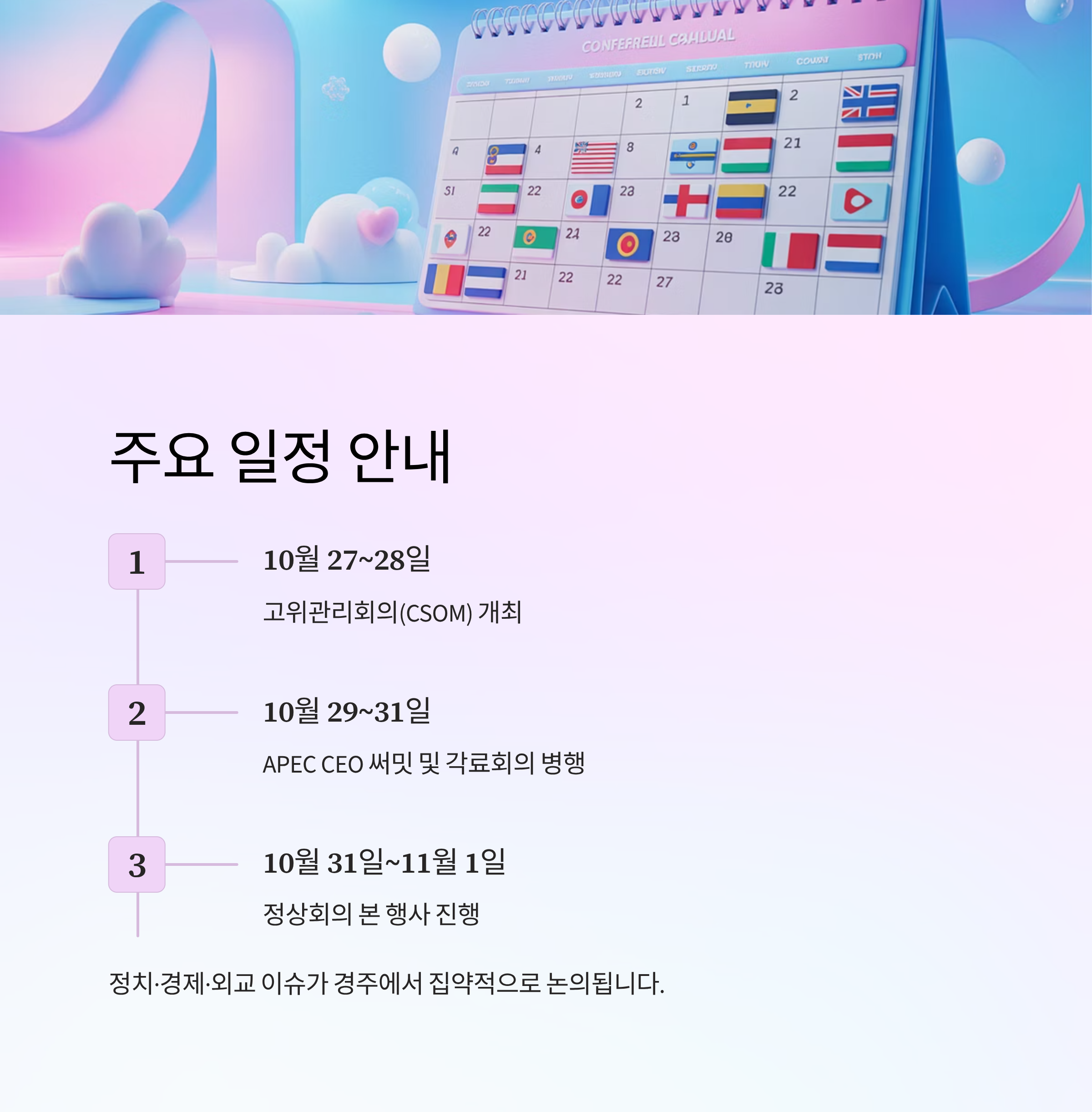 2025 경주 APEC 정상회의 일정과 핵심 의제 총정리