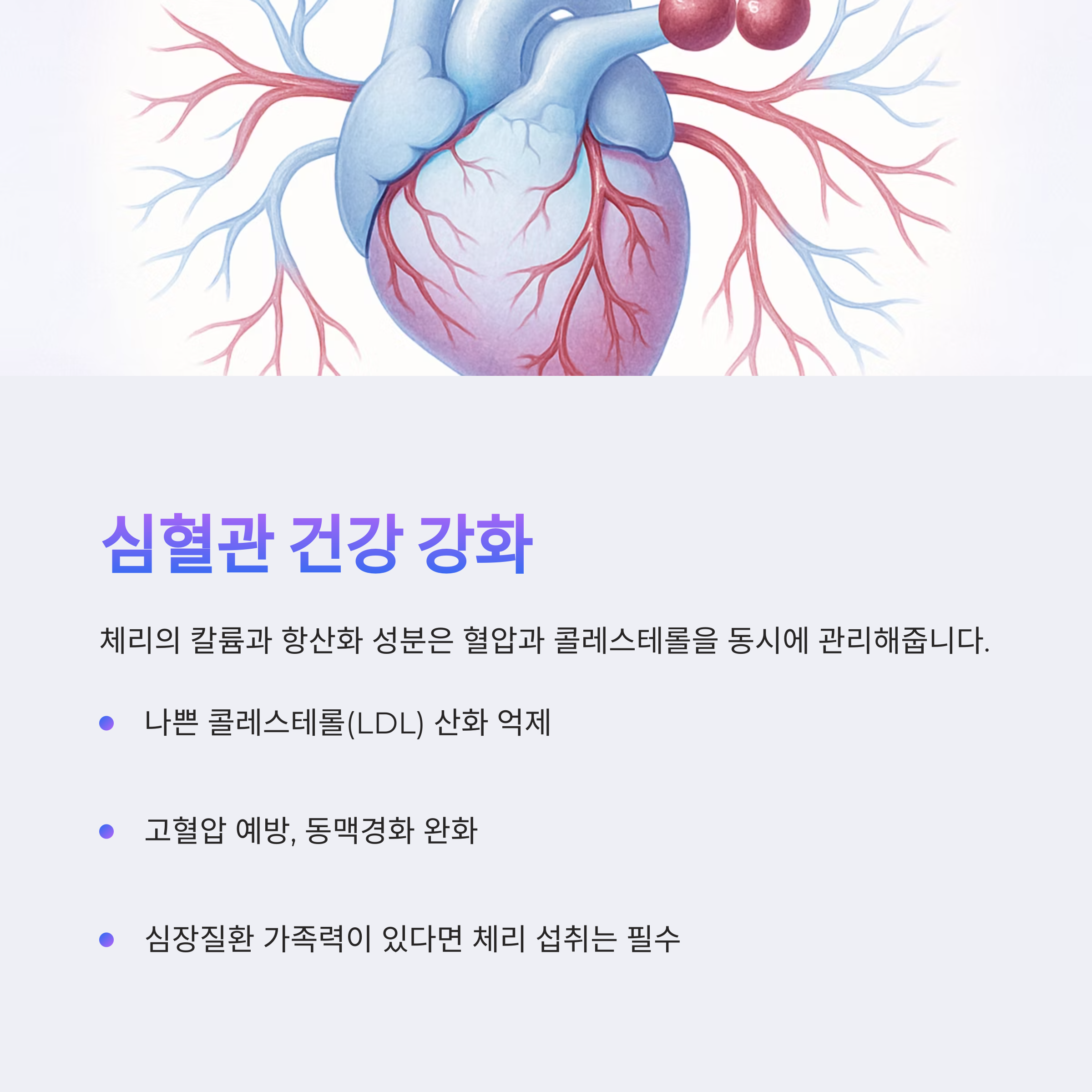 - 심장질환 가족력이 있다면 체리 섭취는 필수