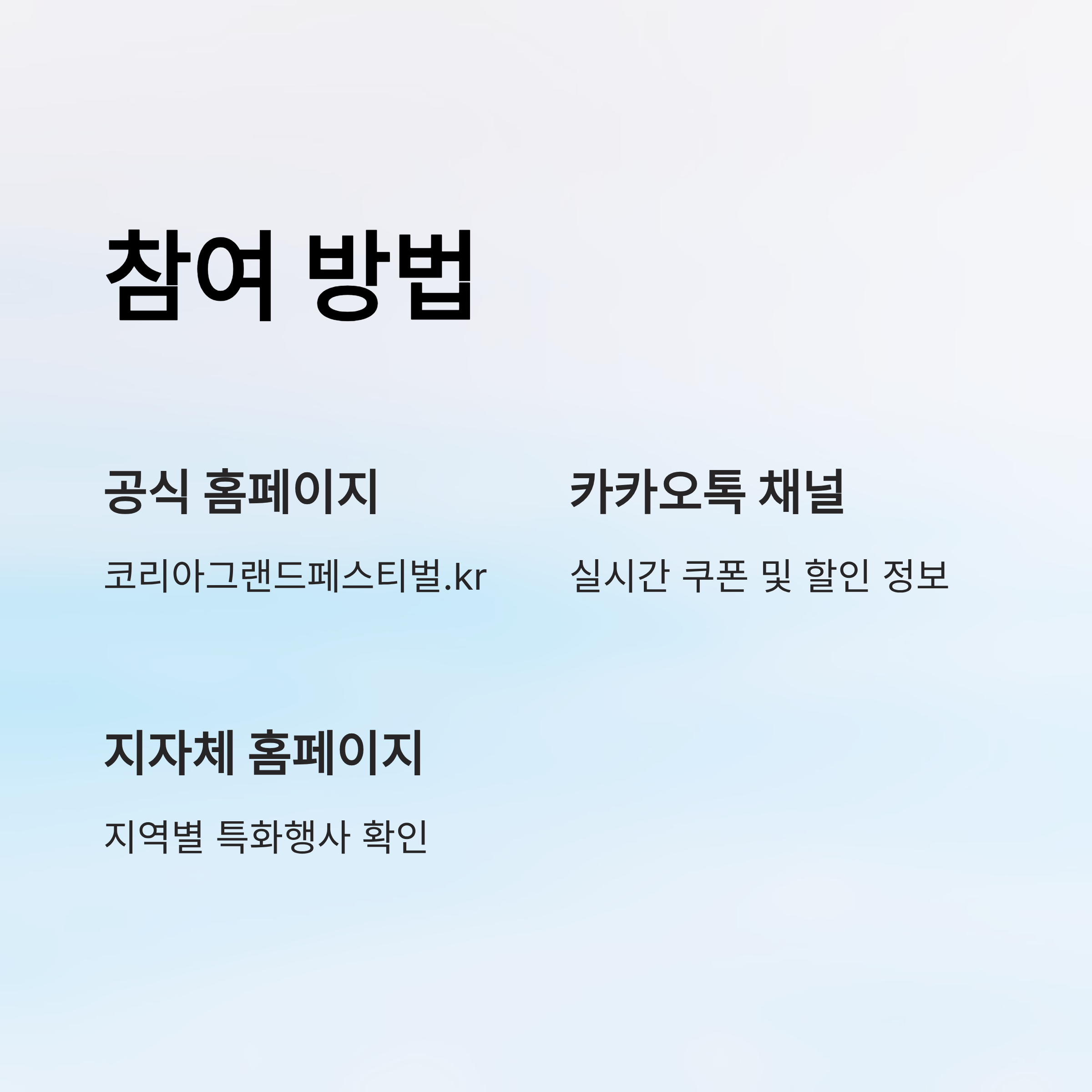 - 카카오톡 채널 및 각 지자체 홈페이지에서도 지역별 특화행사, 쿠폰, 할인 정보 실시간 확인 가능