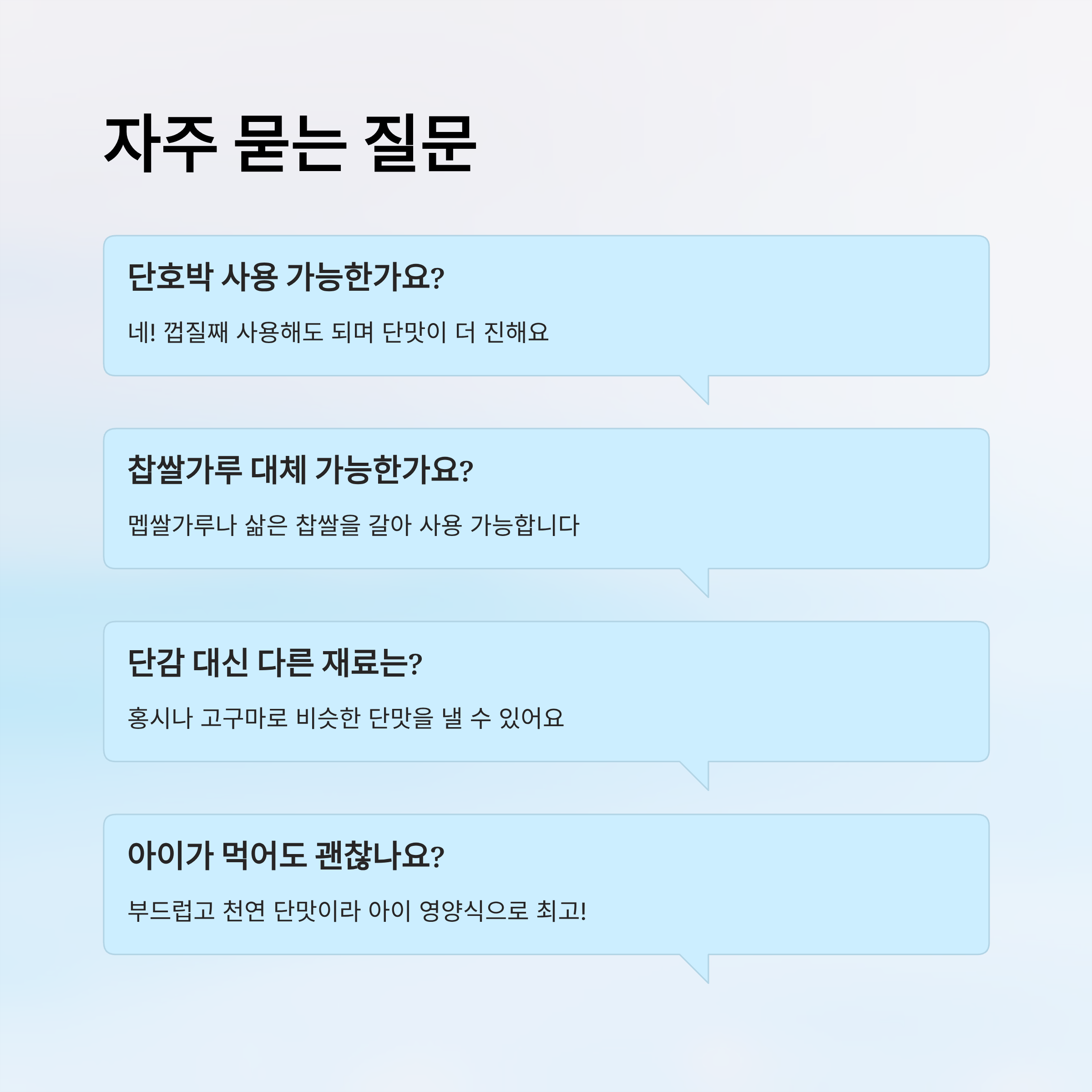 A4. 네, 부드럽고 천연 단맛이 강해 아이들 영양식으로도 좋습니다.