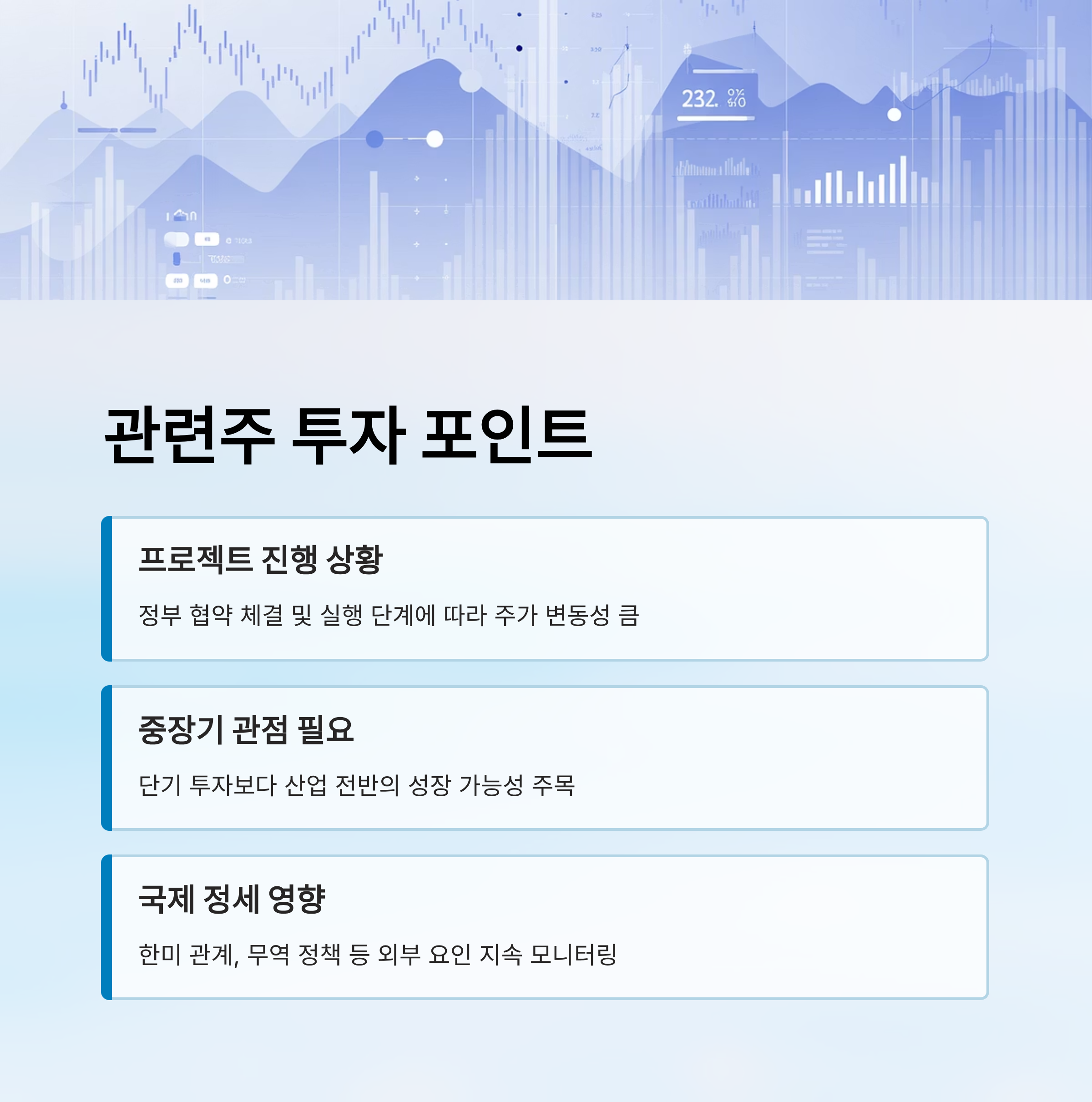 💡 관련주는 마스가 프로젝트 진행 상황에 따라 변동성이 클 수 있으므로, 주의 깊게 시장 흐름을 체크해야 합니다.