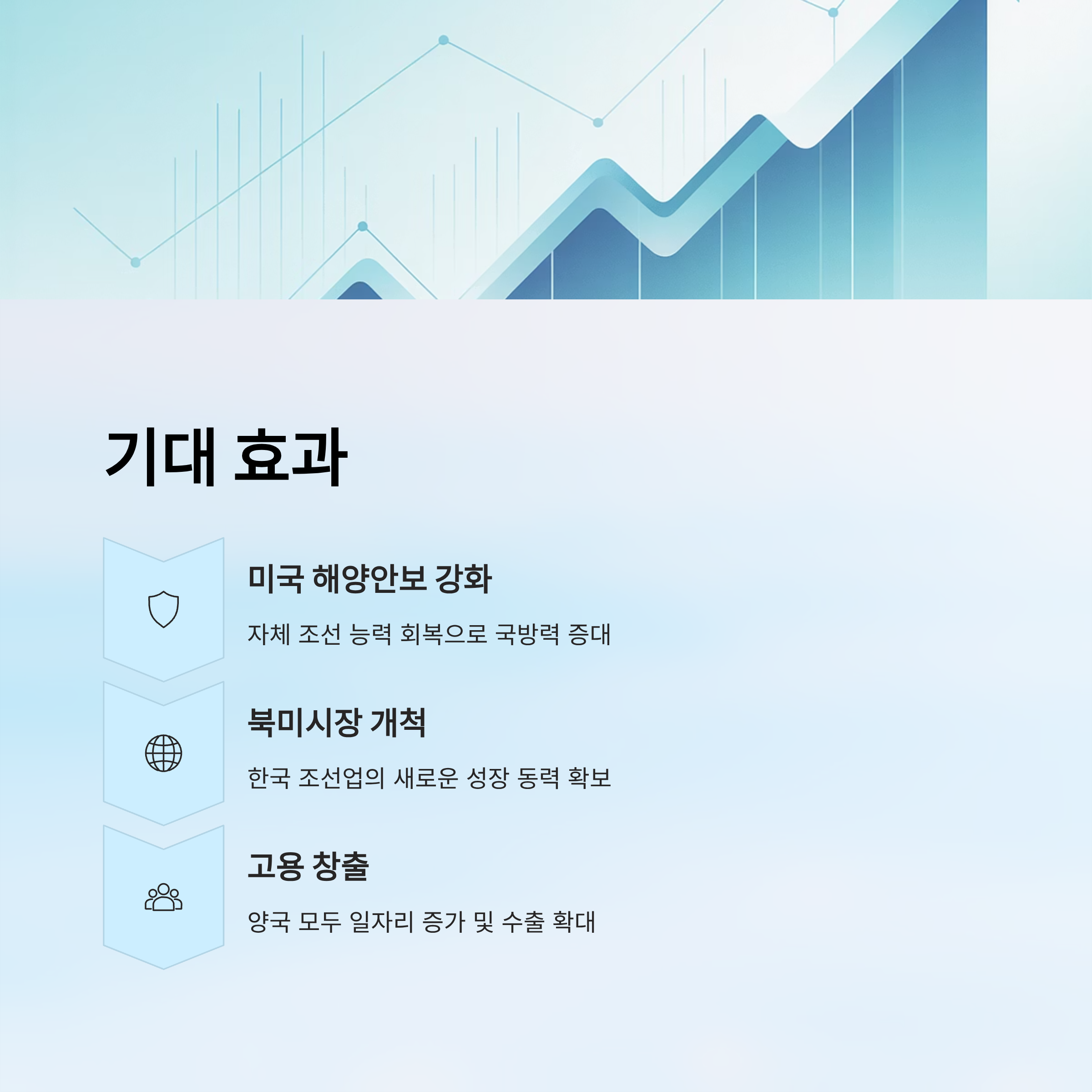 | 기대 효과 | 미국 해양안보 강화, 한국 조선업의 북미시장 개척, 고용 창출 및 수출 증가 |