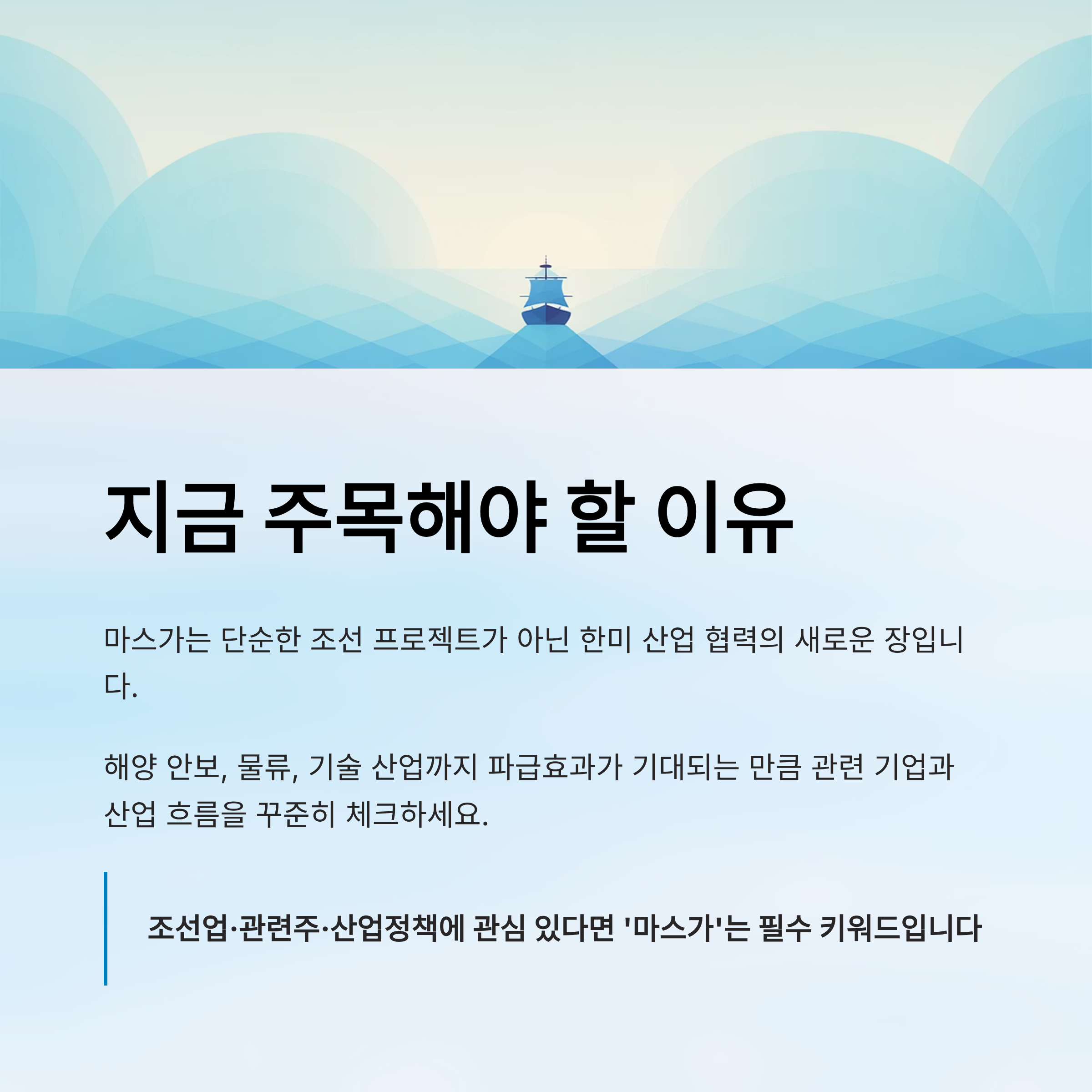 마스가는 단순한 조선 프로젝트가 아닌, 한미 산업 협력의 대표 사례로 부상하고 있습니다.