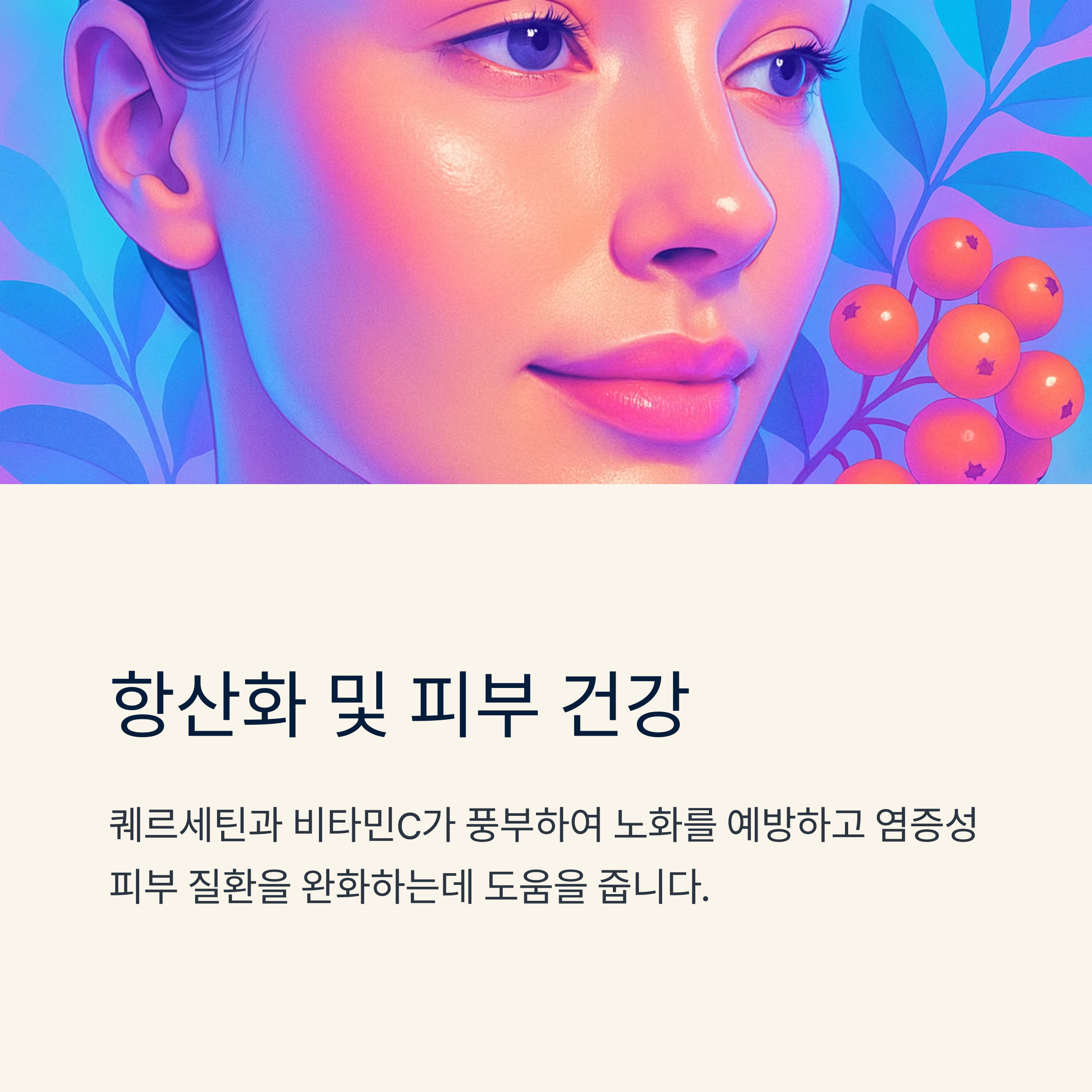 - 퀘르세틴, 비타민C 풍부 → 노화 예방, 염증성 피부 질환 완화