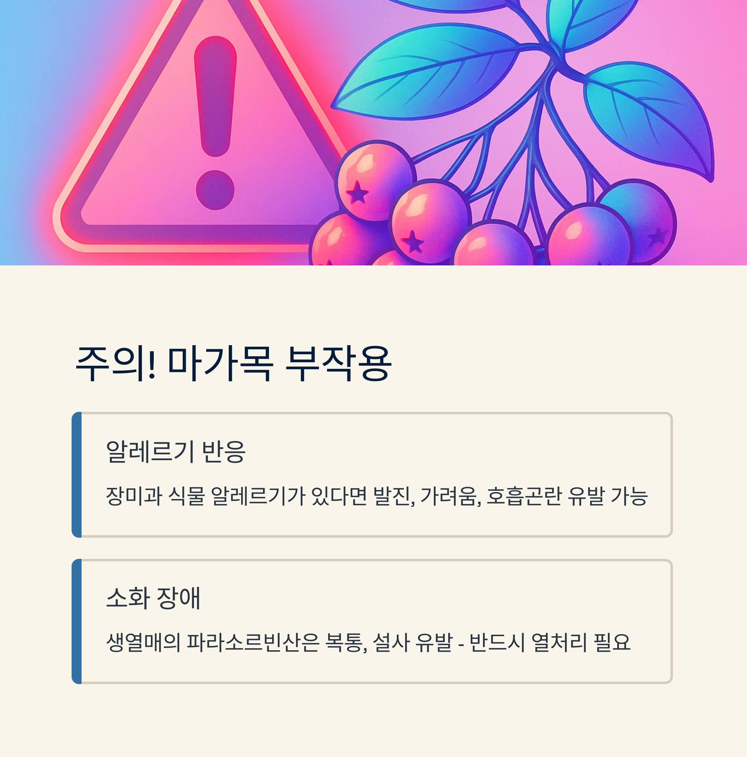 - 마가목 술: 담금주로 활용 시 독성 제거 필수