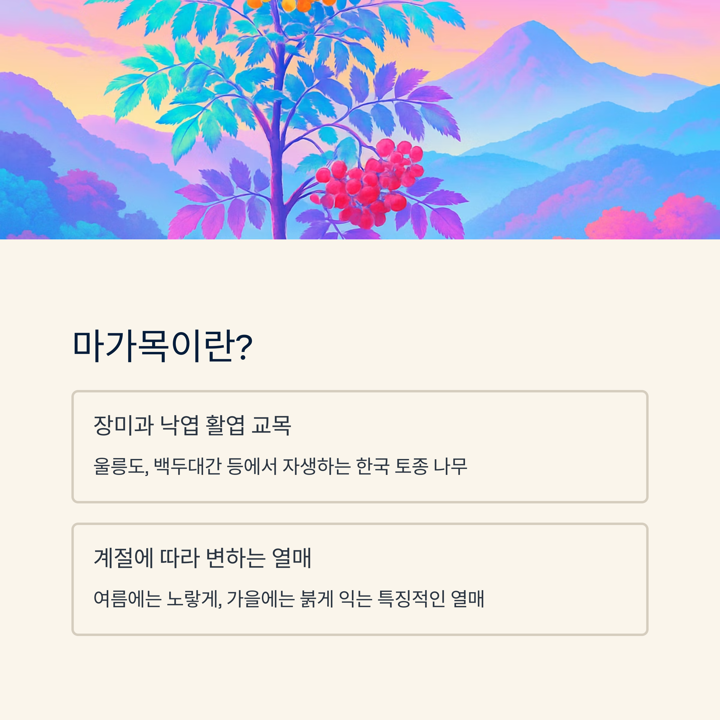 한국의 깊은 산속에서 자생하는 "마가목(Sorbus commixta)"은 오래전부터 약용으로 널리 쓰여온 나무입니다. 특히 기관지와 호흡기에 좋다는 소문이 퍼지며 많은 사람들이 차나 술로 즐기고 있는데요. 마가목의 효능과 더불어, 반드시 알아두어야 할 부작용까지 정리해드립니다.