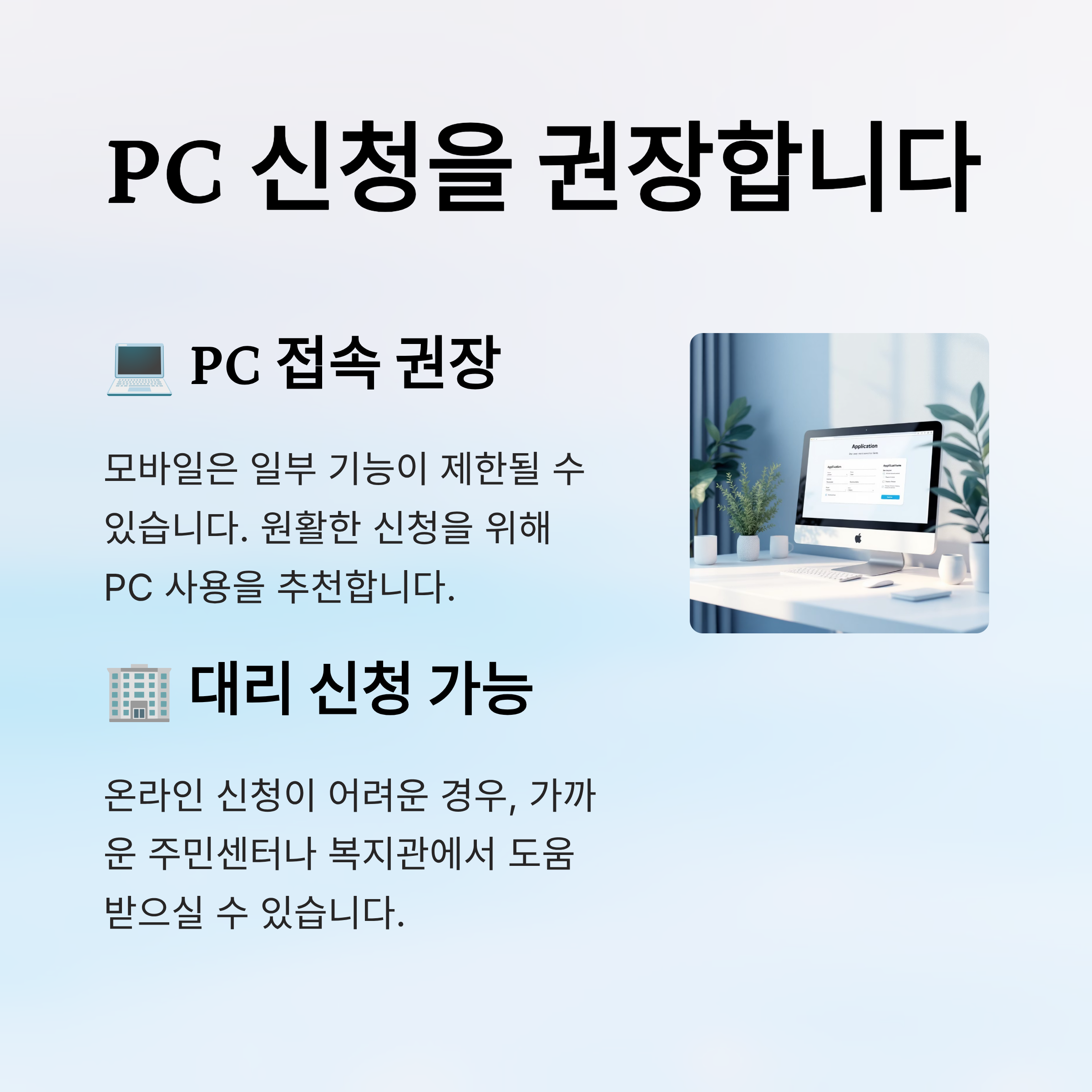 온라인 신청이 어려운 경우, 가까운 주민센터 또는 복지관에서 대리 신청 가능