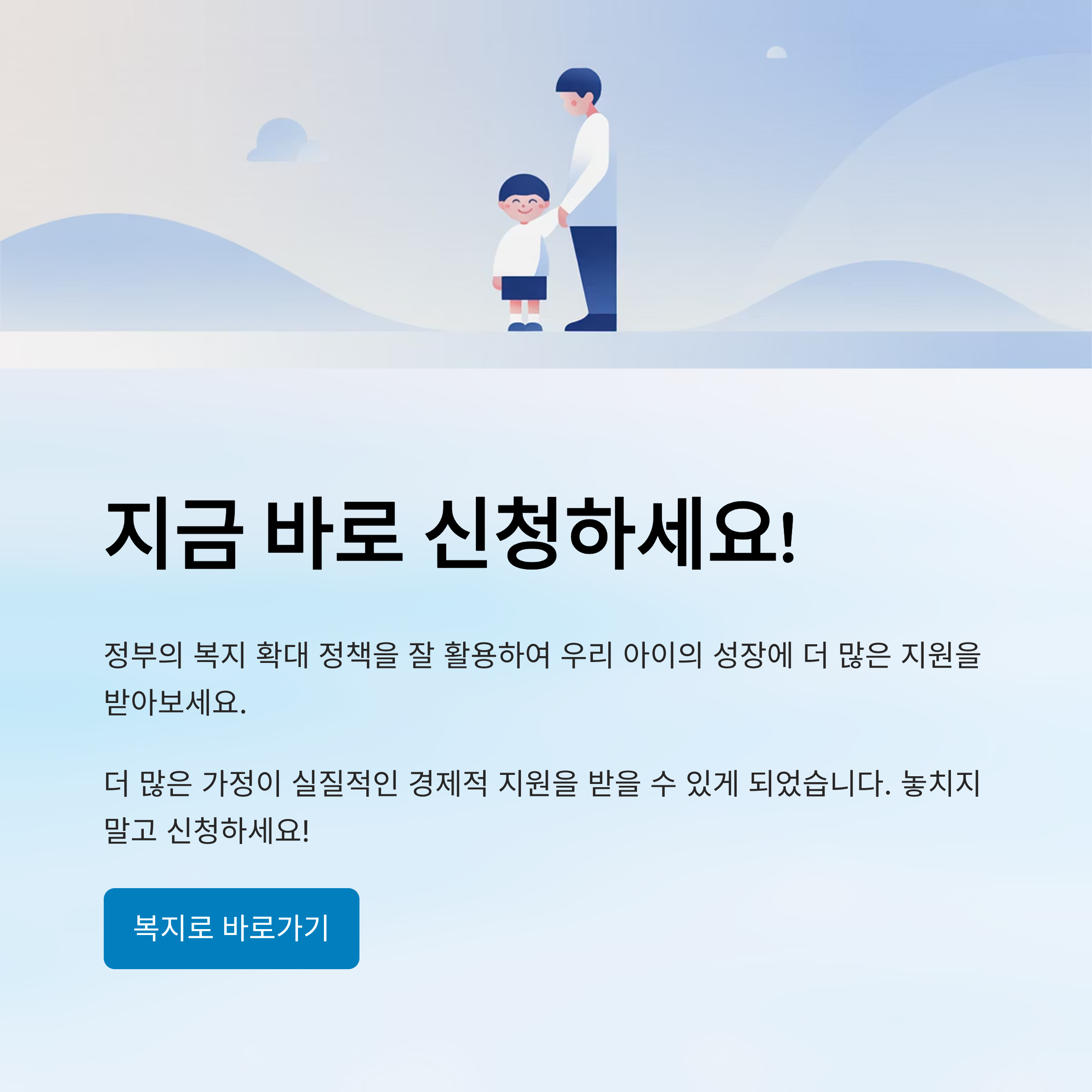 정부의 복지 확대 정책을 잘 활용하여 우리 아이의 성장에 더 많은 지원을 받아보세요.