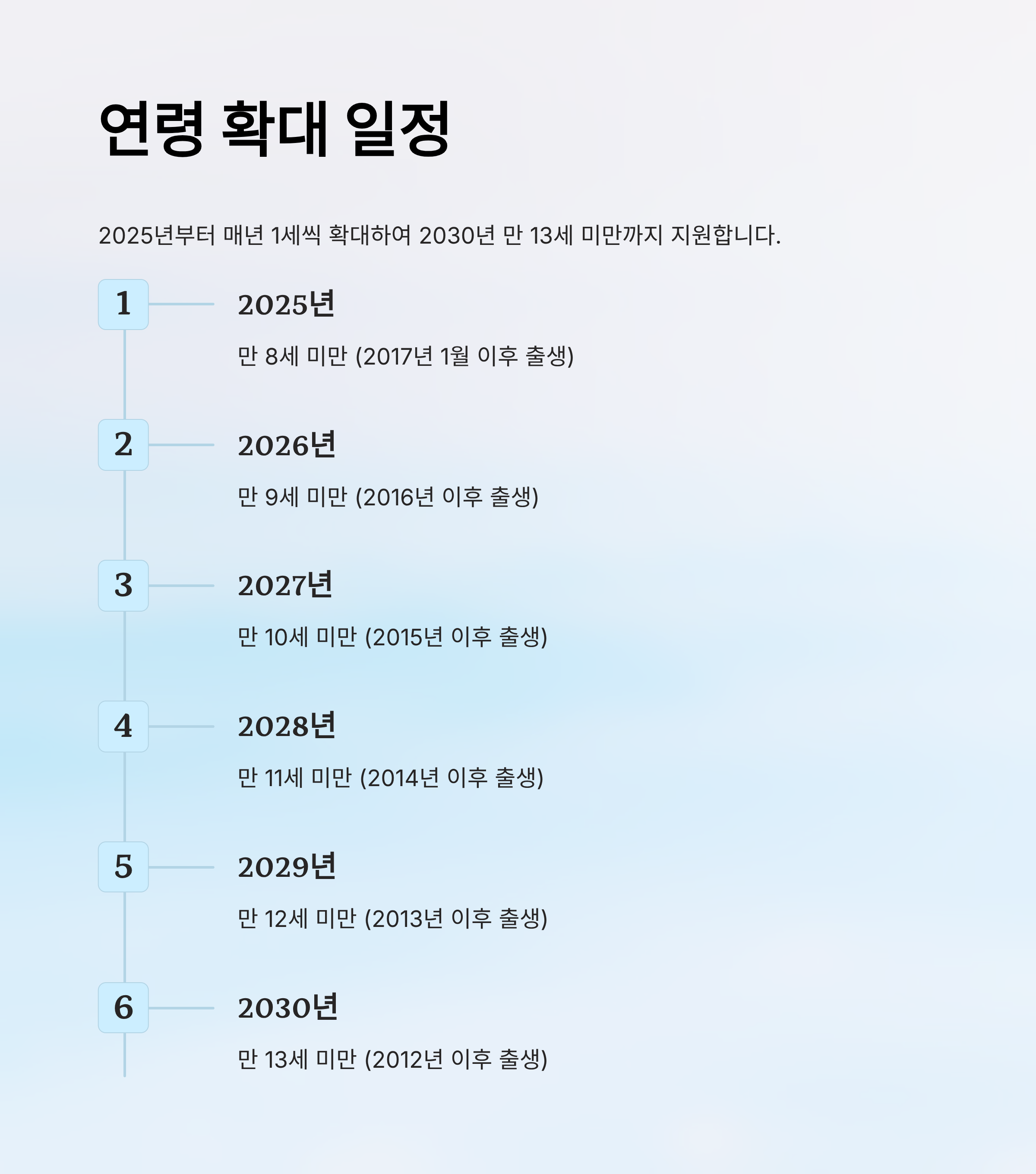 🎯 대상: 2025년부터 만 8세 미만 → 2030년까지 만 13세 미만