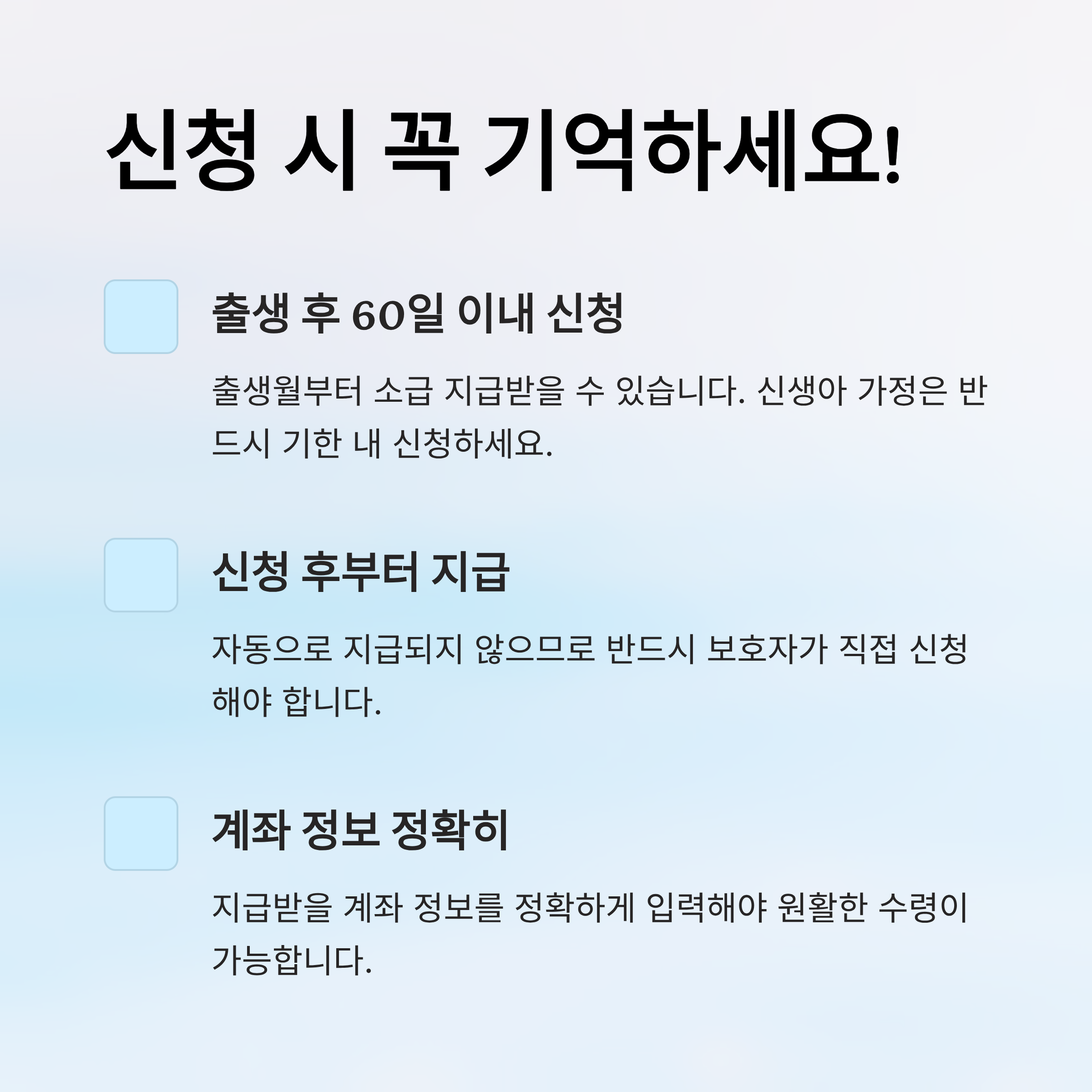 📌 출생일 포함 60일 이내 신청 시 → 출생월부터 소급 지급