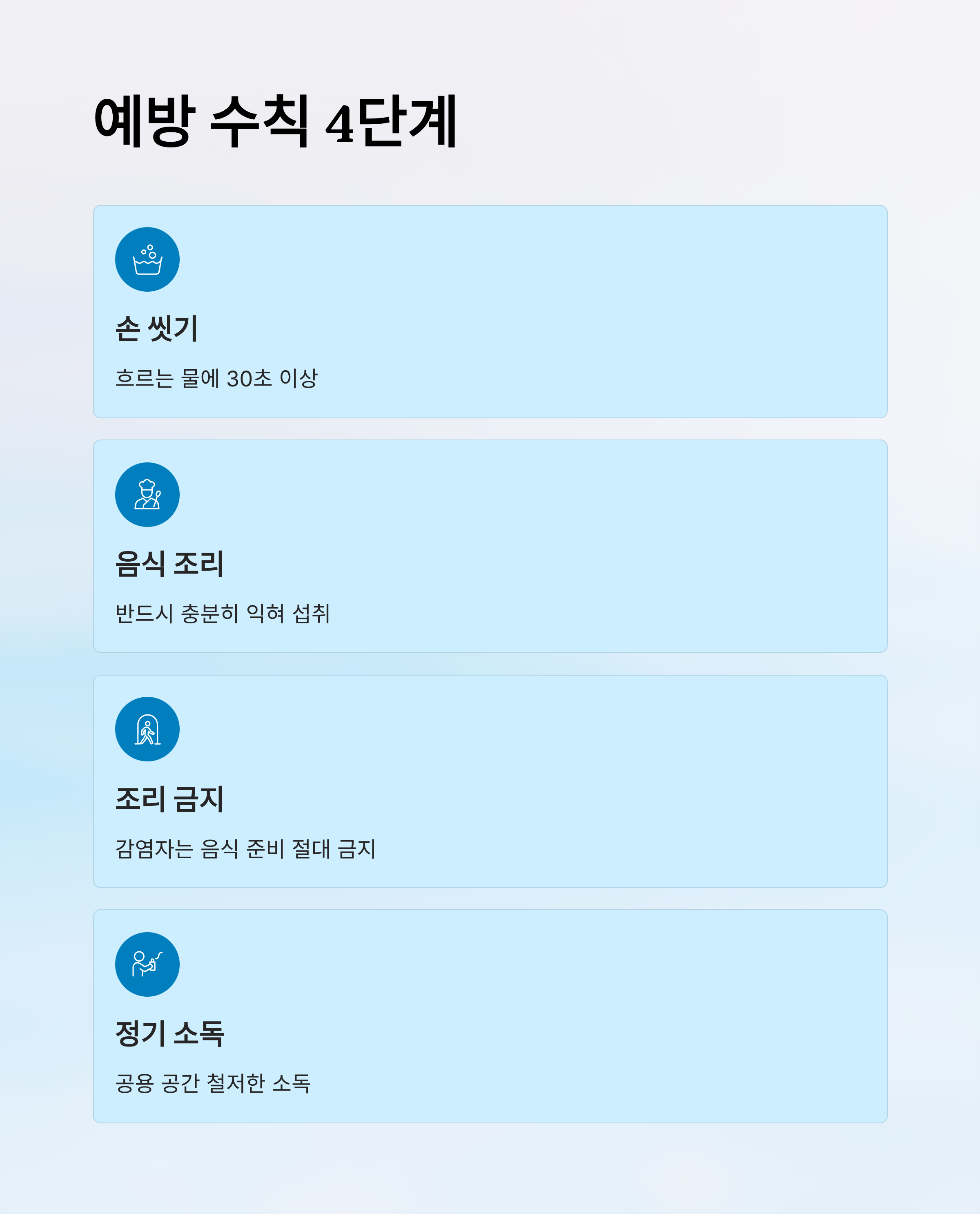 - 감염자는 음식 준비 금지