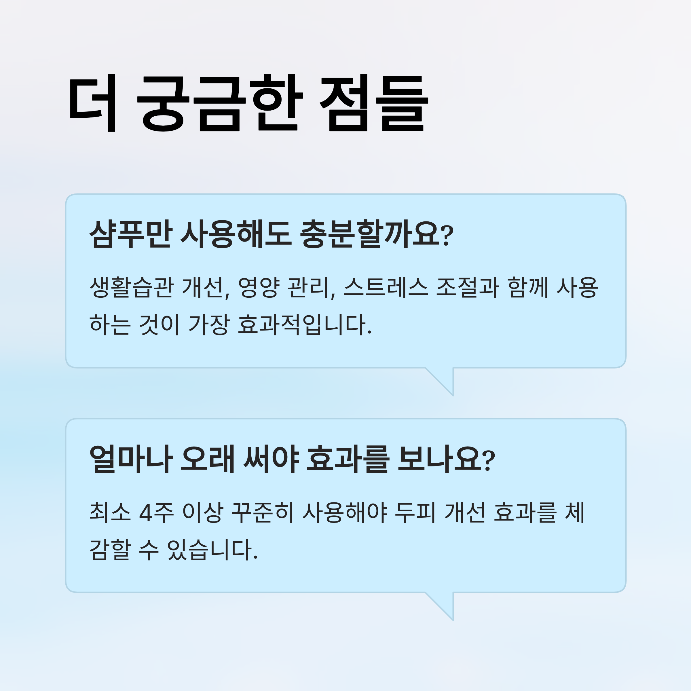 A4. 최소 4주 이상 꾸준히 사용해야 두피 개선 효과를 체감할 수 있습니다.