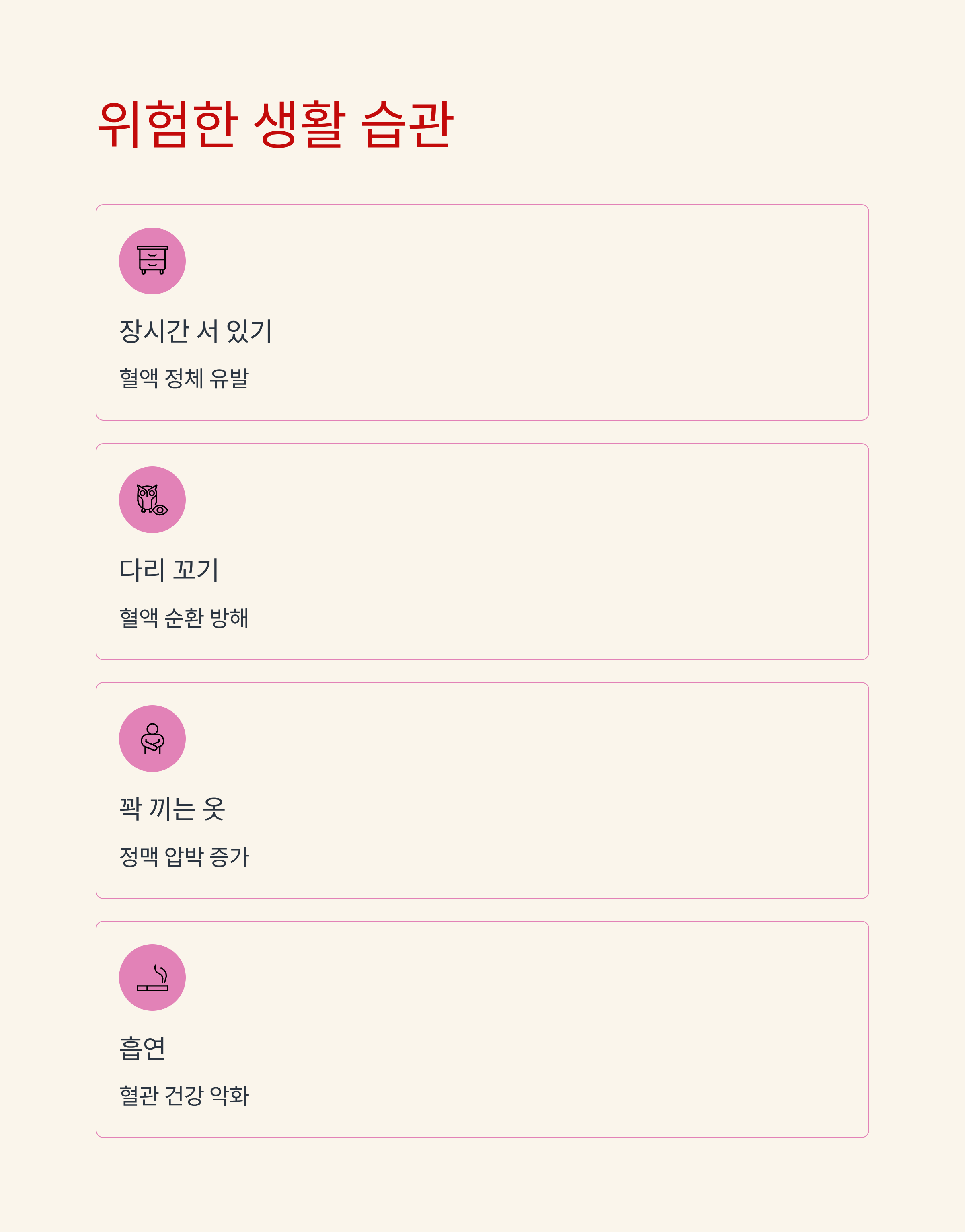- 장시간 서 있거나 앉아있는 습관