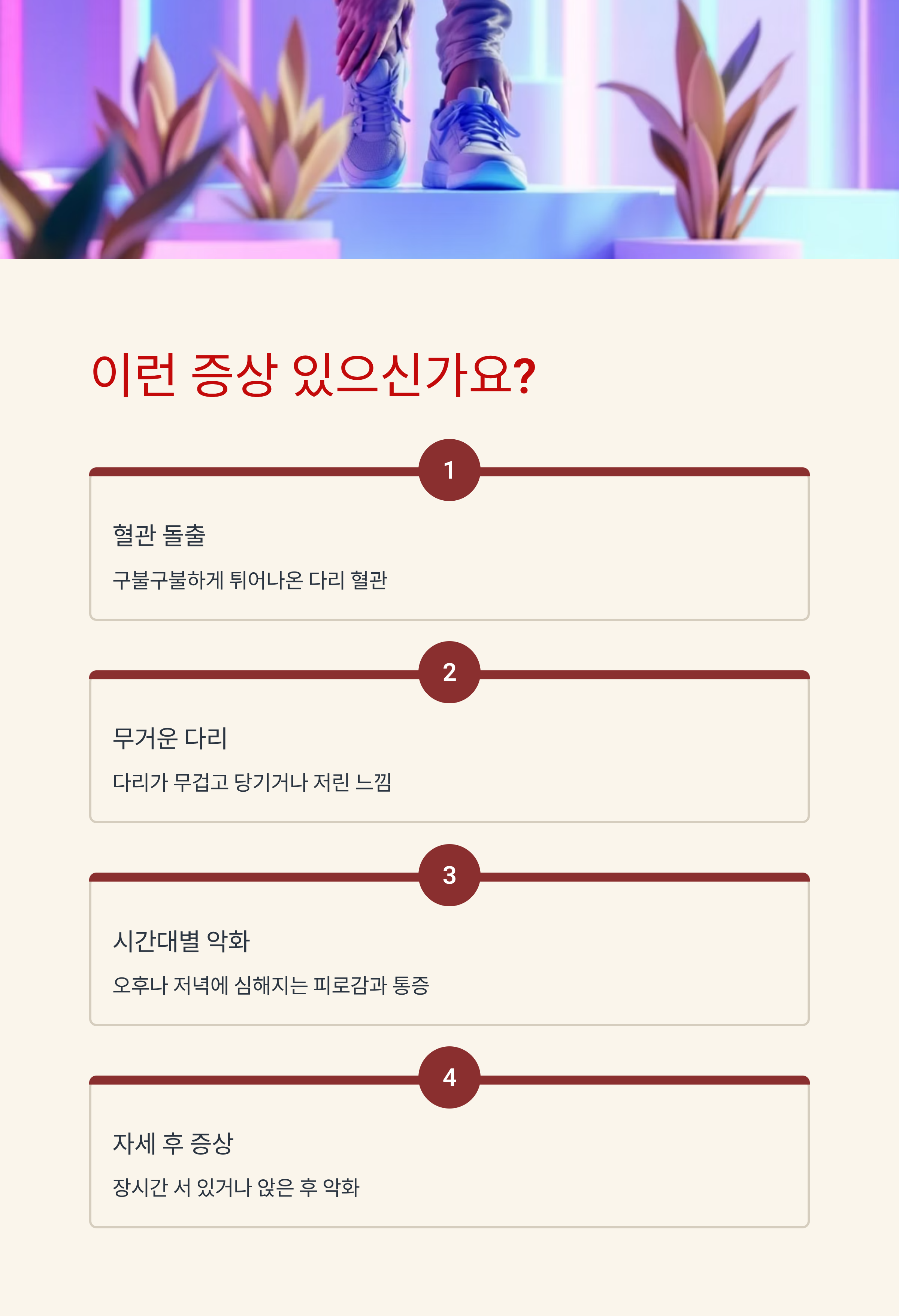 다음과 같은 증상이 반복된다면 하지 정맥류를 의심해보세요.