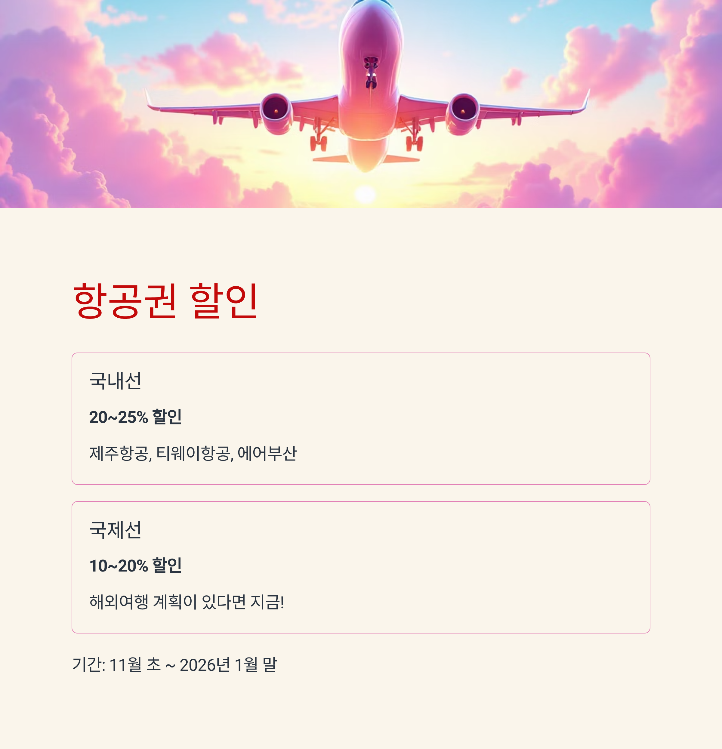 | 항공사 | 11월 초 ~ 2026년 1월 말 |