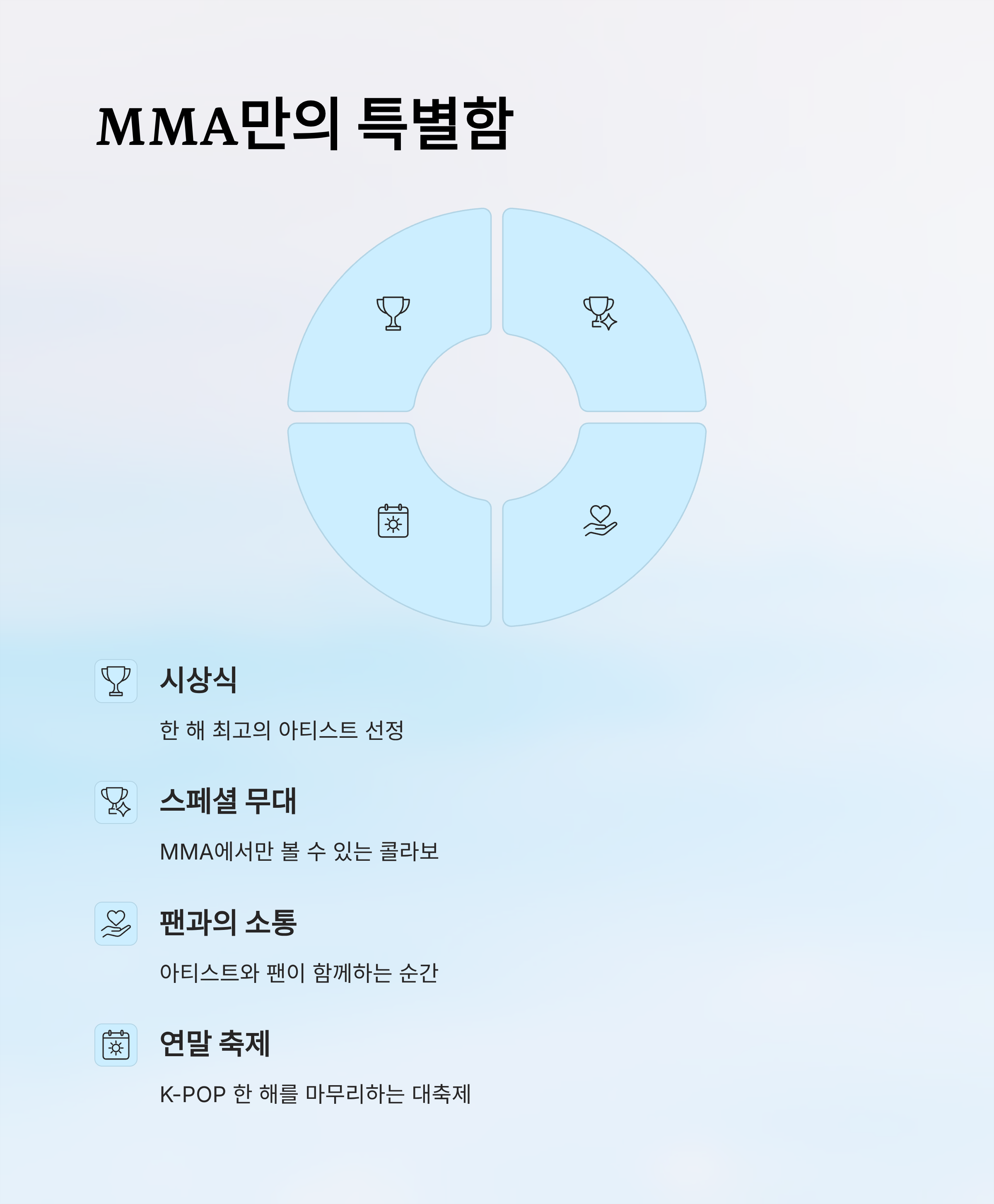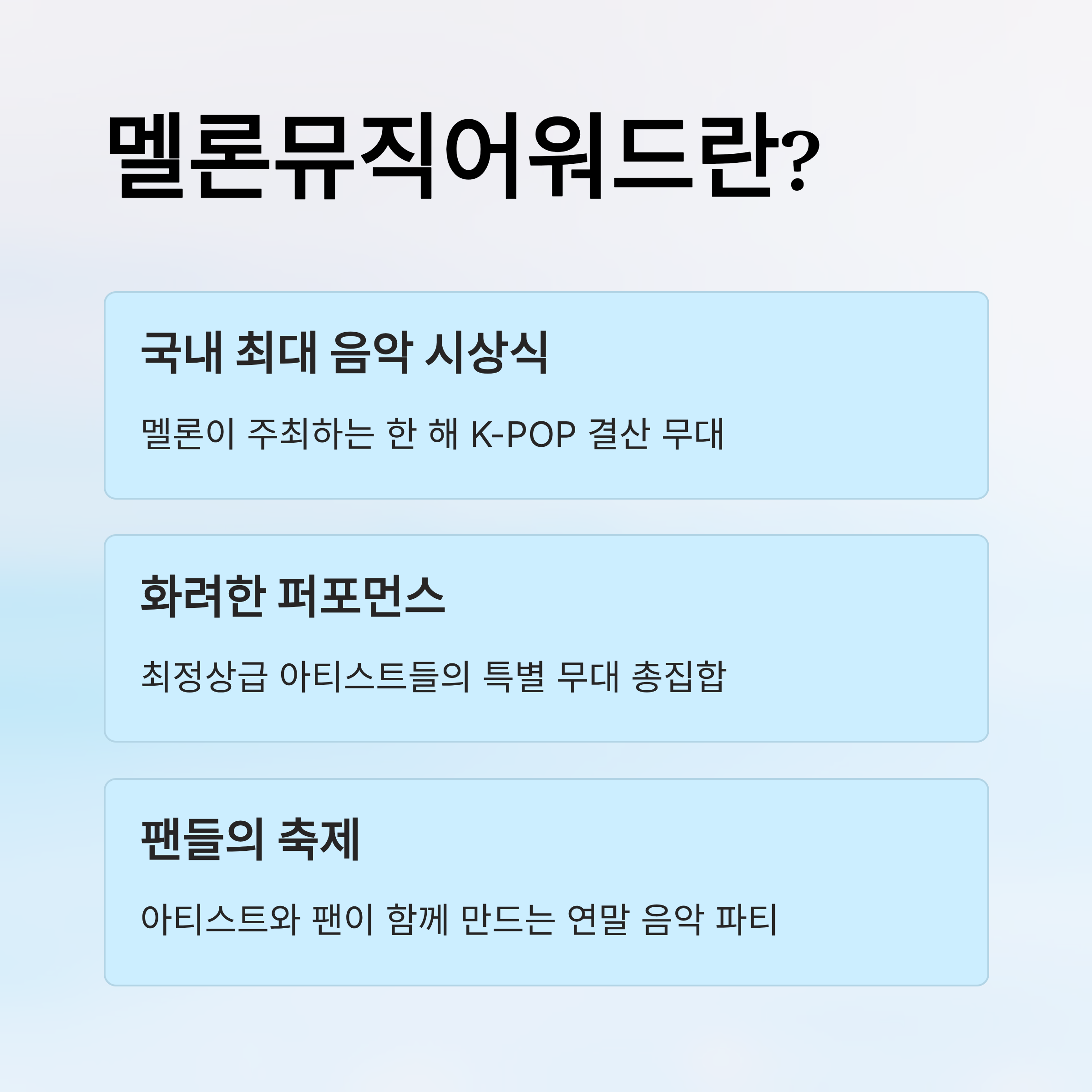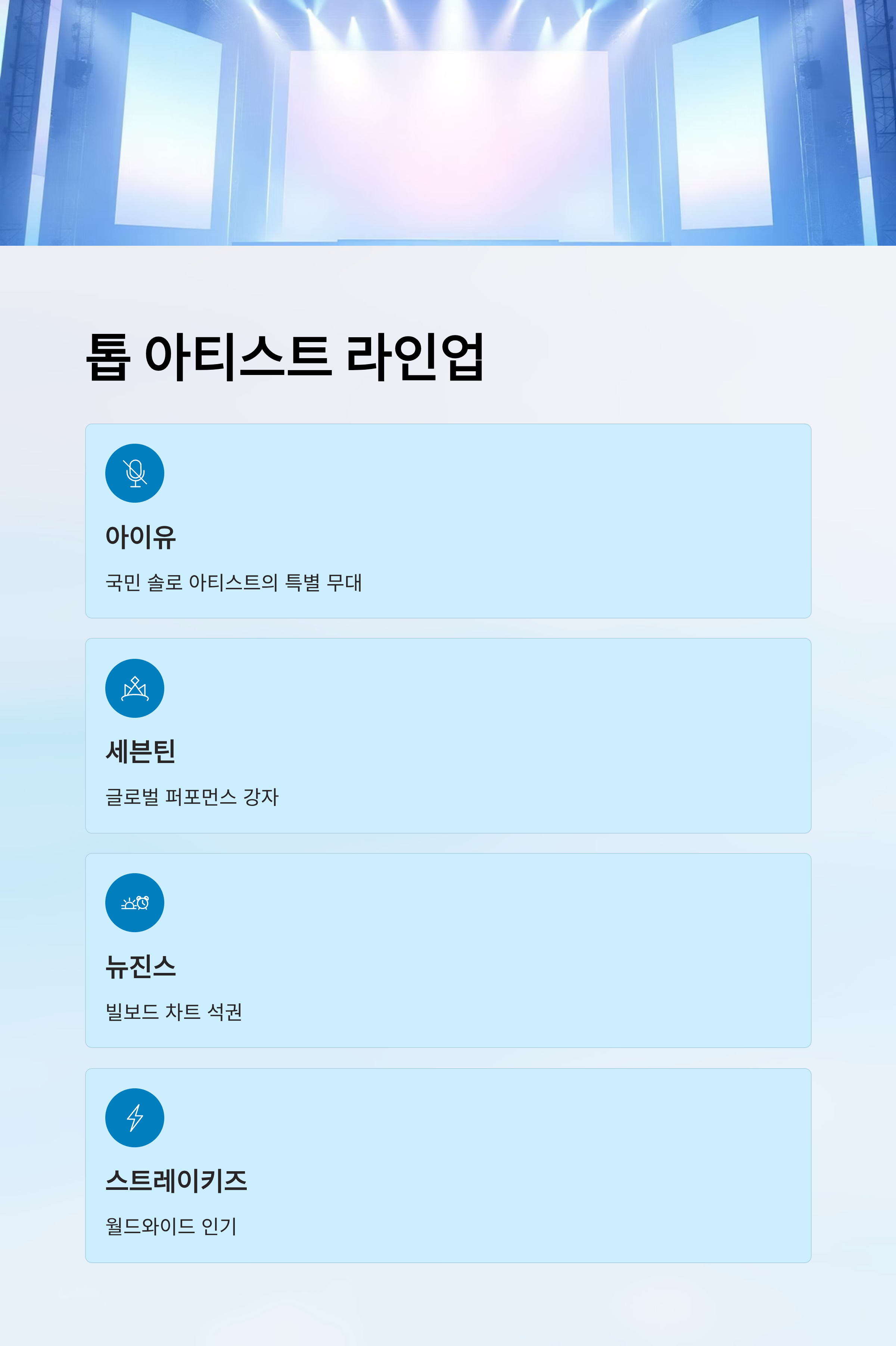 MMA 2025는 그 어느 해보다 다양한 아티스트와 폭넓은 장르의 무대로 꾸며질 예정입니다. 팬들과 아티스트가 함께 만드는 이 특별한 무대는 단순한 시상식을 넘어 K-POP 팬이라면 놓쳐서는 안 될 연말 음악 축제입니다.