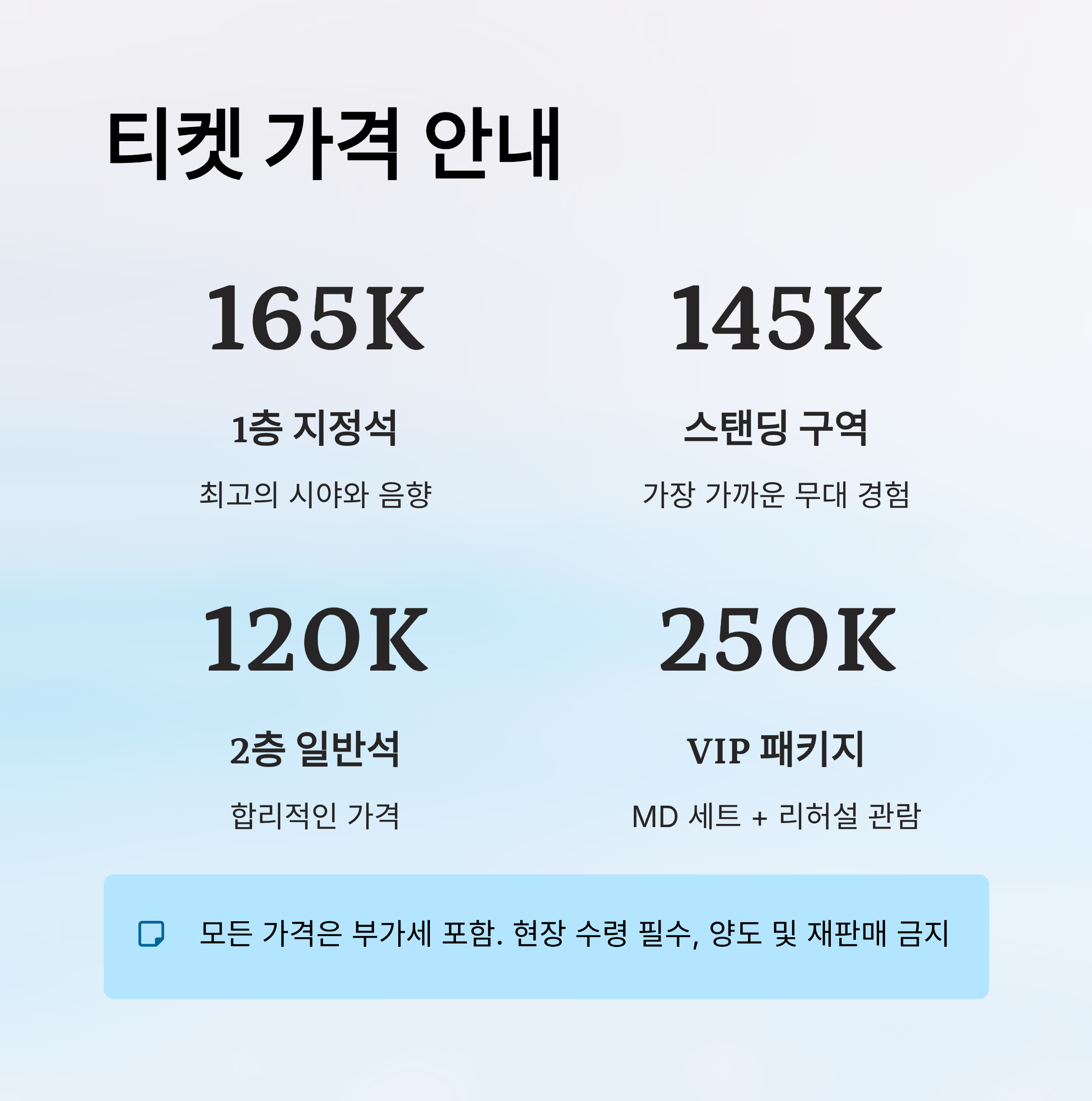 ※ 모든 티켓은 현장 수령, 신분증 지참 필수 / 양도 및 재판매 금지