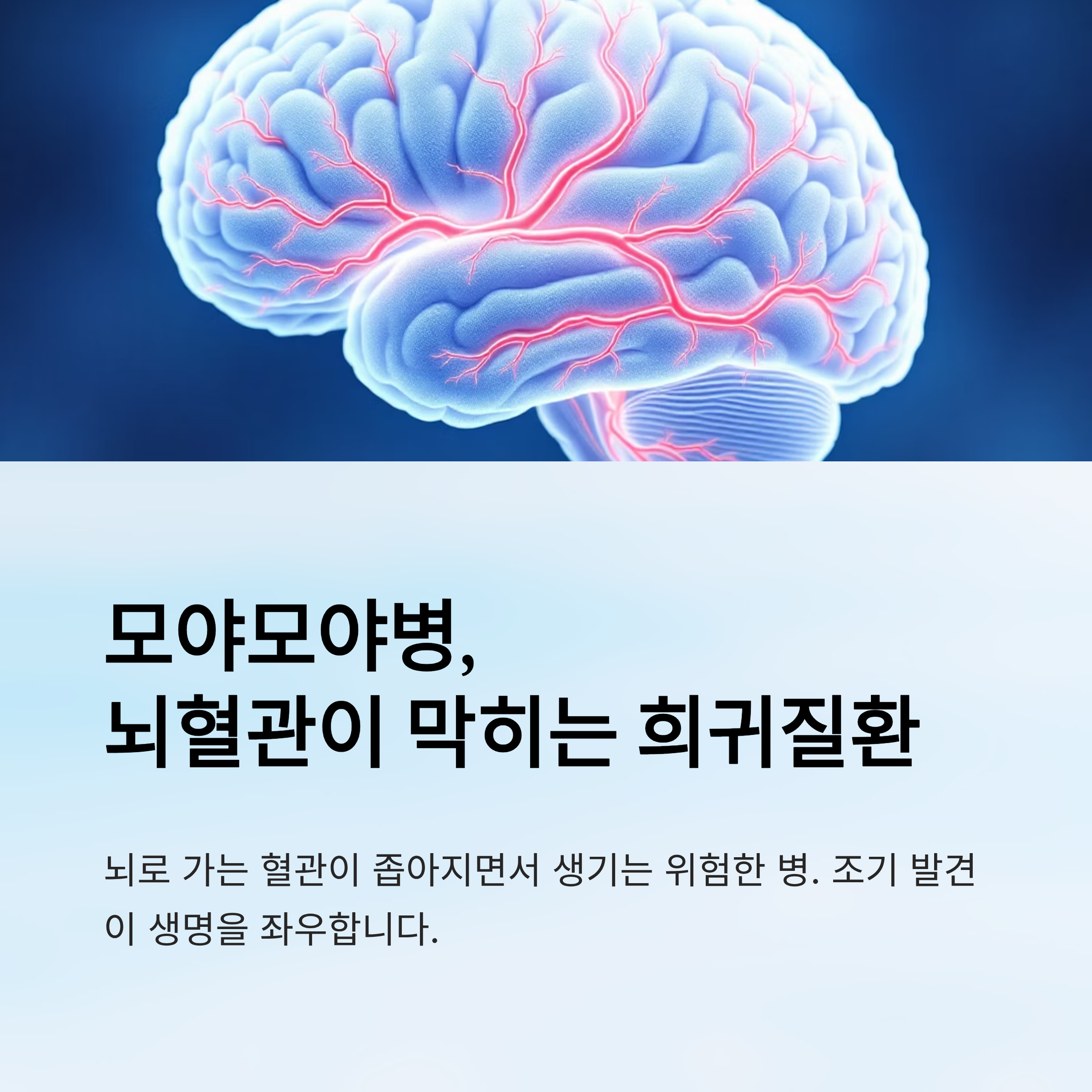 모야모야병은 조기에 발견해 적절한 수술적 치료를 받는다면 충분히 일상생활이 가능한 질환입니다. 그러나 증상을 방치하면 뇌출혈, 뇌경색, 인지 저하로 이어질 수 있으므로 정확한 진단과 빠른 치료가 가장 중요합니다.