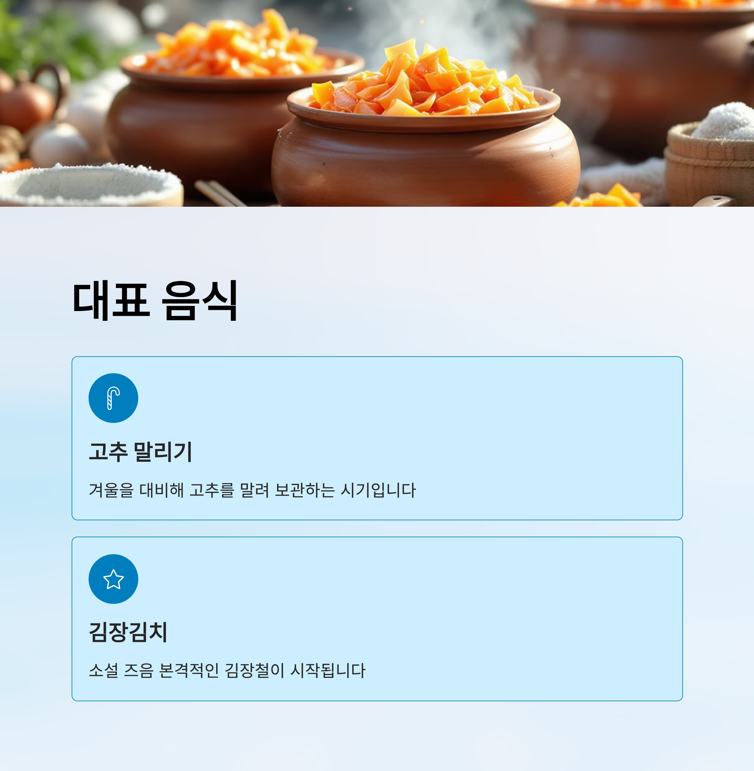 - 고추, 무, 배추 등 저장 식품 준비