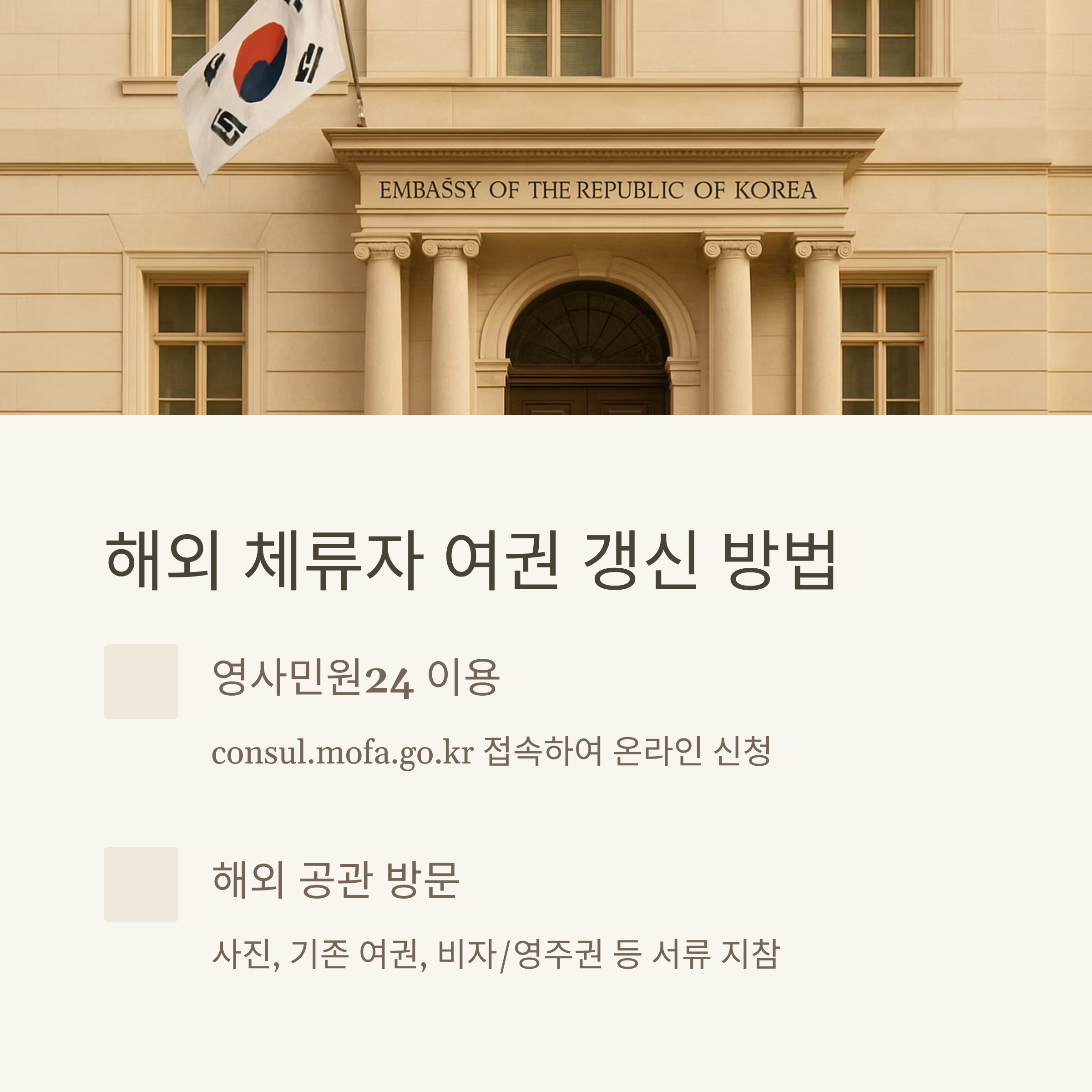 - 항상 영사민원24 (consul.mofa.go.kr) 활용 가능