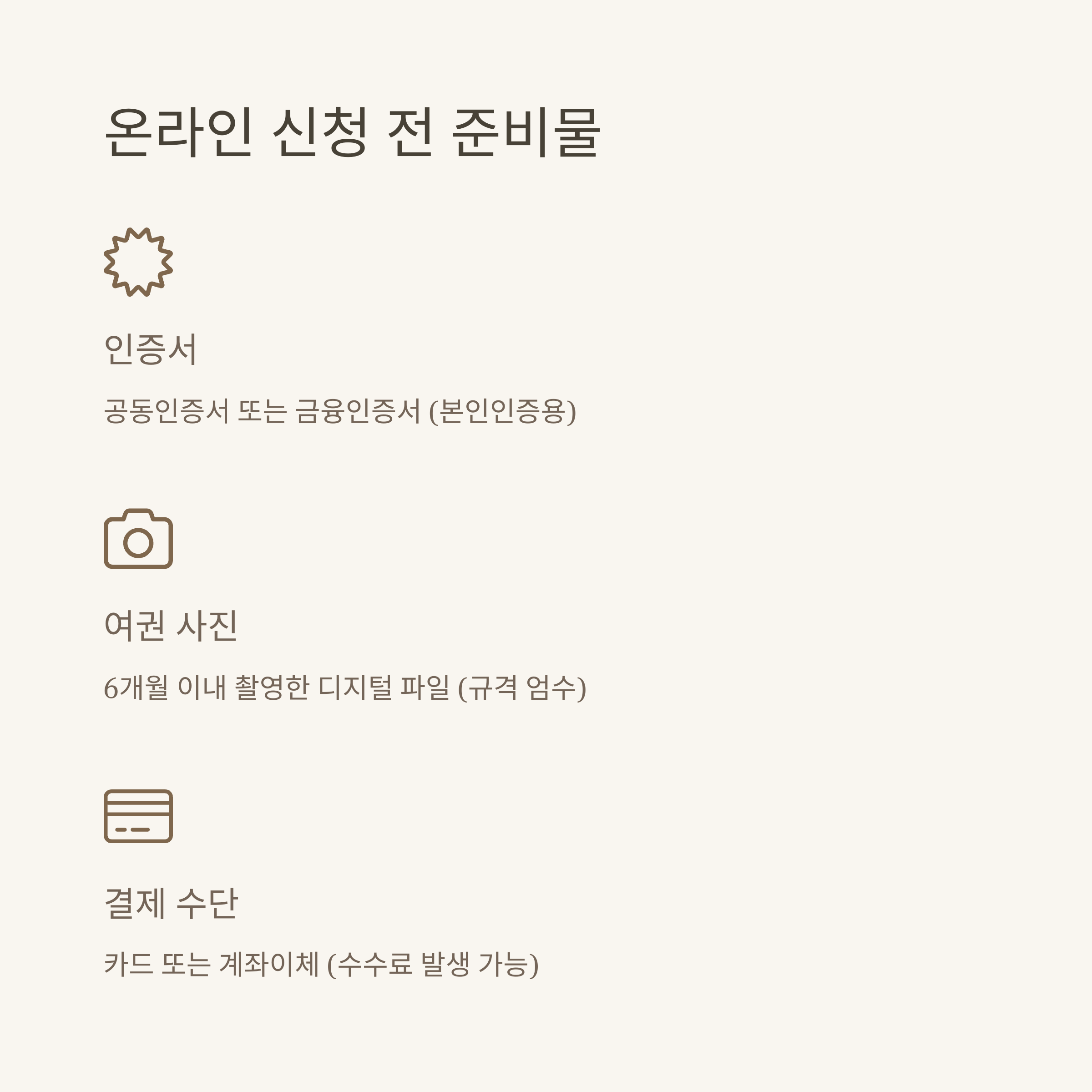 - 사진 규격, 신청 대상, 수령 기관 등 조건 꼭 확인