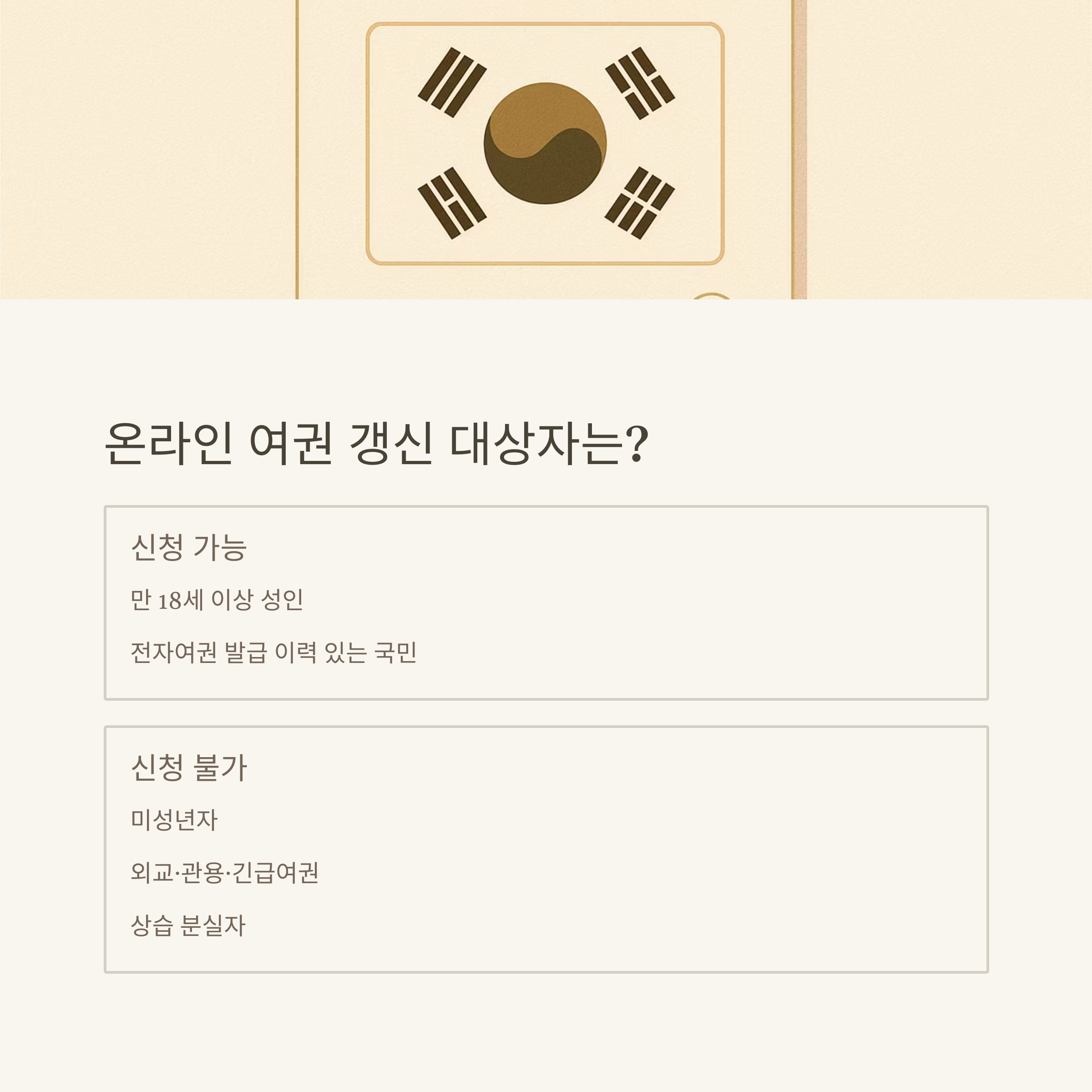- 신청 대상: 만 18세 이상, 전자여권 발급 이력 있는 국민