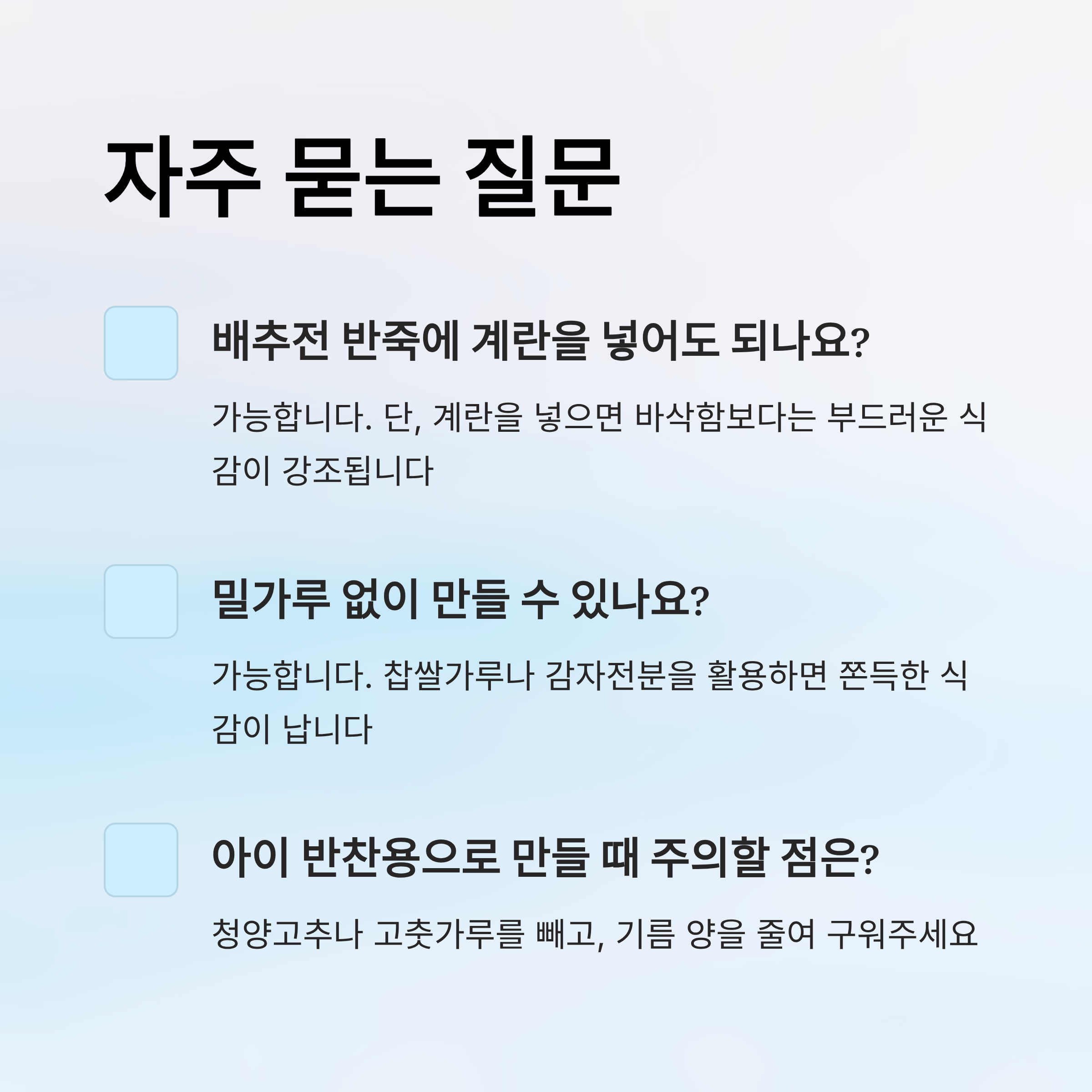 Q1. 배추전 반죽에 계란을 넣어도 되나요?