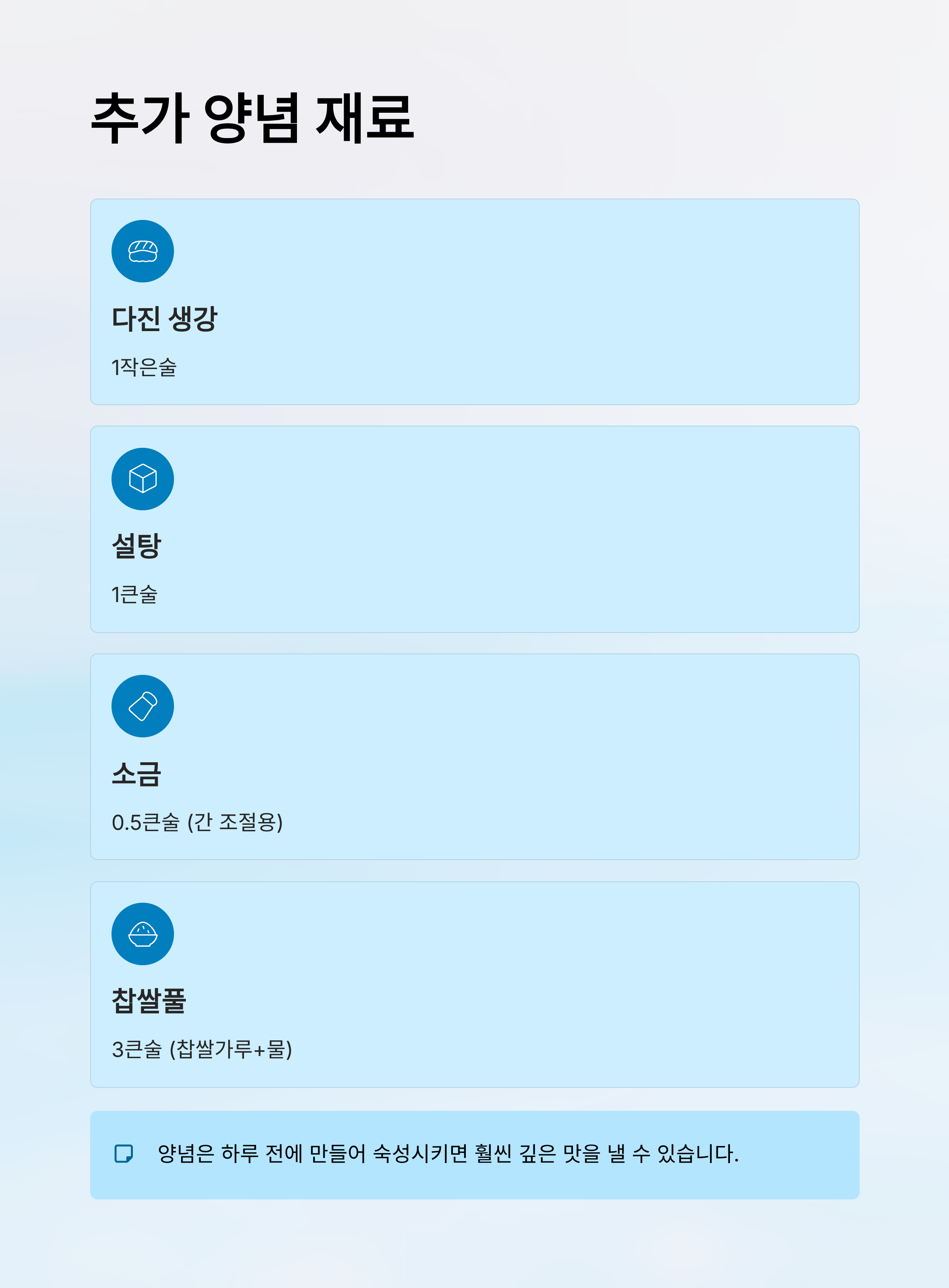 - 찹쌀풀: 3큰술 (찹쌀가루 1큰술+물 1컵을 끓여 만든 풀)
